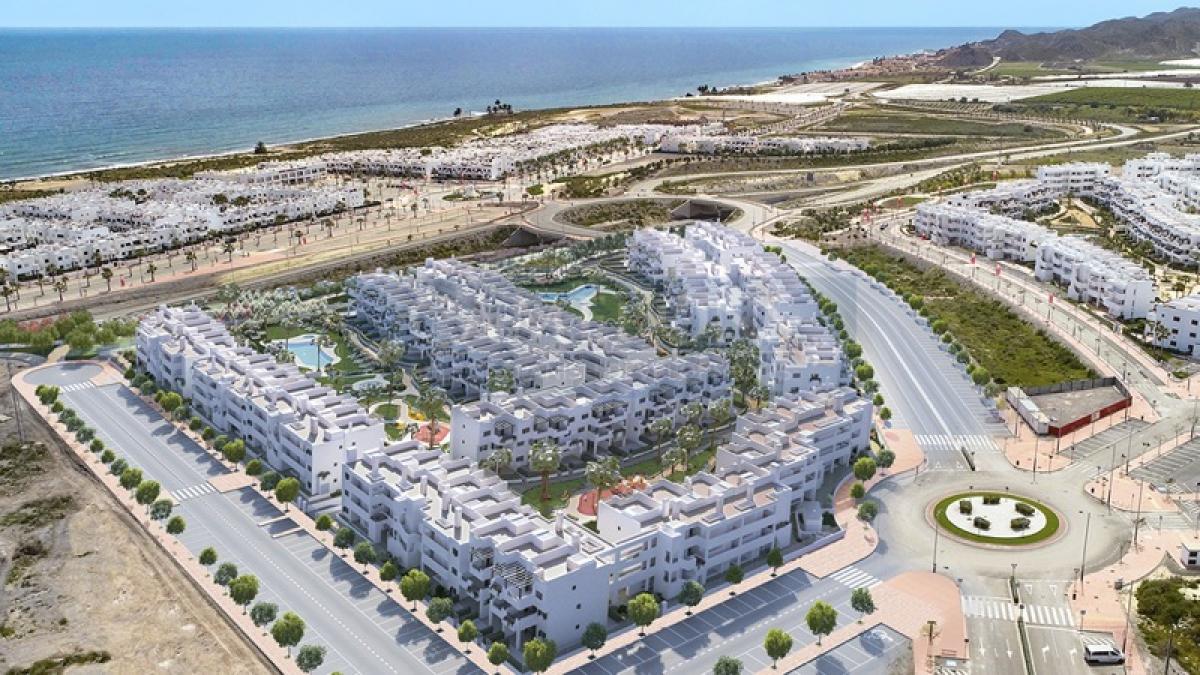 1, 2 and 3 bedroom apartments with terrace, garden or top terrace and basement parking.Beach homes located 600m from Los Nardos beach, in the Coast of Almeria, Southern Spain from €98.000Los Narcisos apartments are located within a short walking distance of Playa Los Nardos and Playa La Entrevista on the Almeria coast, close to the towns of Águilas and Vera.It is a complex designed to offer large interior spaces, with beautiful gardens and squares that include a large swimming pool area with Jacuzzi, bordered by a large meadow of natural grass with showers, sun loungers and parasols of heather that also enjoys community WIFI.The generous community areas also have a children's playground area within a closed perimeter of security. Thus, the phase 7 of the Mar de Pulpi Pueblo Mediterraneo Residential Complex has a lot to offer: great amenities, a quiet location in a spectacular natural setting, access to all day-to-day services and excellent sports facilities that the complex offers.Los Narcisos offer 1, 2 and 3 bedroom beach apartments with large terraces. The properties on the ground floor have a covered porch and garden. The owners of the houses located on the first floor will make the most of the Almerian sun on their spacious terraces - those interested in a penthouse also have a large top terrace with seaviews that can be accessed from the property. Top terraces also include shower, tap, electricity and television plugs where it is possible to place a barbecue. All types of apartments have parking in the basement.Delivery: 30 August 2021