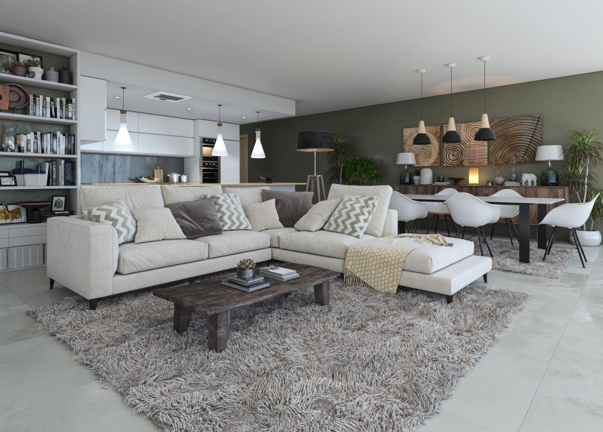 As you enter the apartments, you are met with a fabulous open plan living, kitchen dining area, leading onto a spacious terrace, that emphasizes indoor-outdoor living. The kitchen is fully equipped with integrated high-end appliances and offers a perfect space for entertaining, or having meals with all of the family.