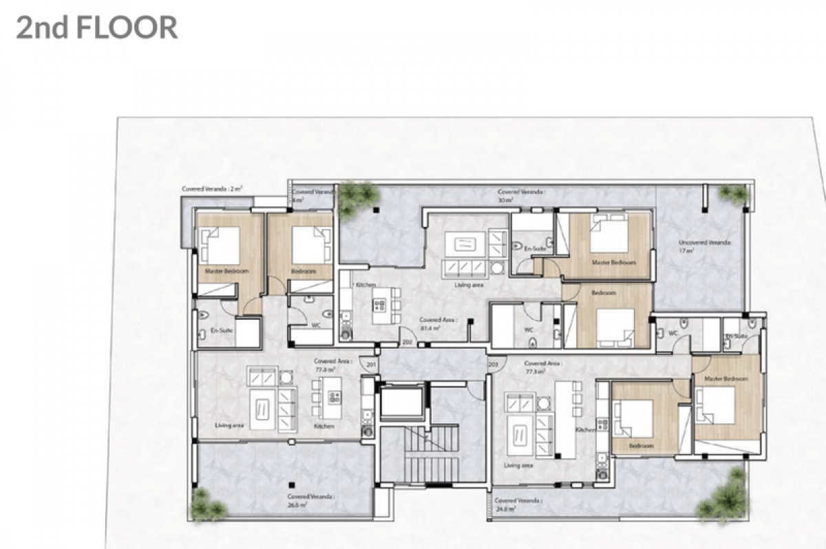 Apartments for sale in a complex in Limassol. Specification: Concrete enclosing structure of the building. The floors in the living rooms, dining rooms and bathrooms are tiled with ceramic tiles. The interior walls and ceilings are painted white. The floors in the bedrooms are laminate. Built-in kitchen furniture. Fire-resistant entrance door with a safety lock. Interior doors made of white laminate. Matt Black door hardware and magnetic supports. Aluminum balcony doors with double glazing and thermal insulation. Built-in wardrobes for the bedroom to order. Ceramic two-tone floor and wall tiles. The plumbing is made of white porcelain. Energy-efficient solar panels. Additional electric heating of hot water. Photovoltaic system. The photovoltaic system reduces general-purpose costs. Energy efficiency designs of class A. High-security locks for entrance doors. Combined cabinet for washing machine/dryer. Convenient storerooms on the ground floor for each apartment. One parking space for each apartment.Reference number: 99164