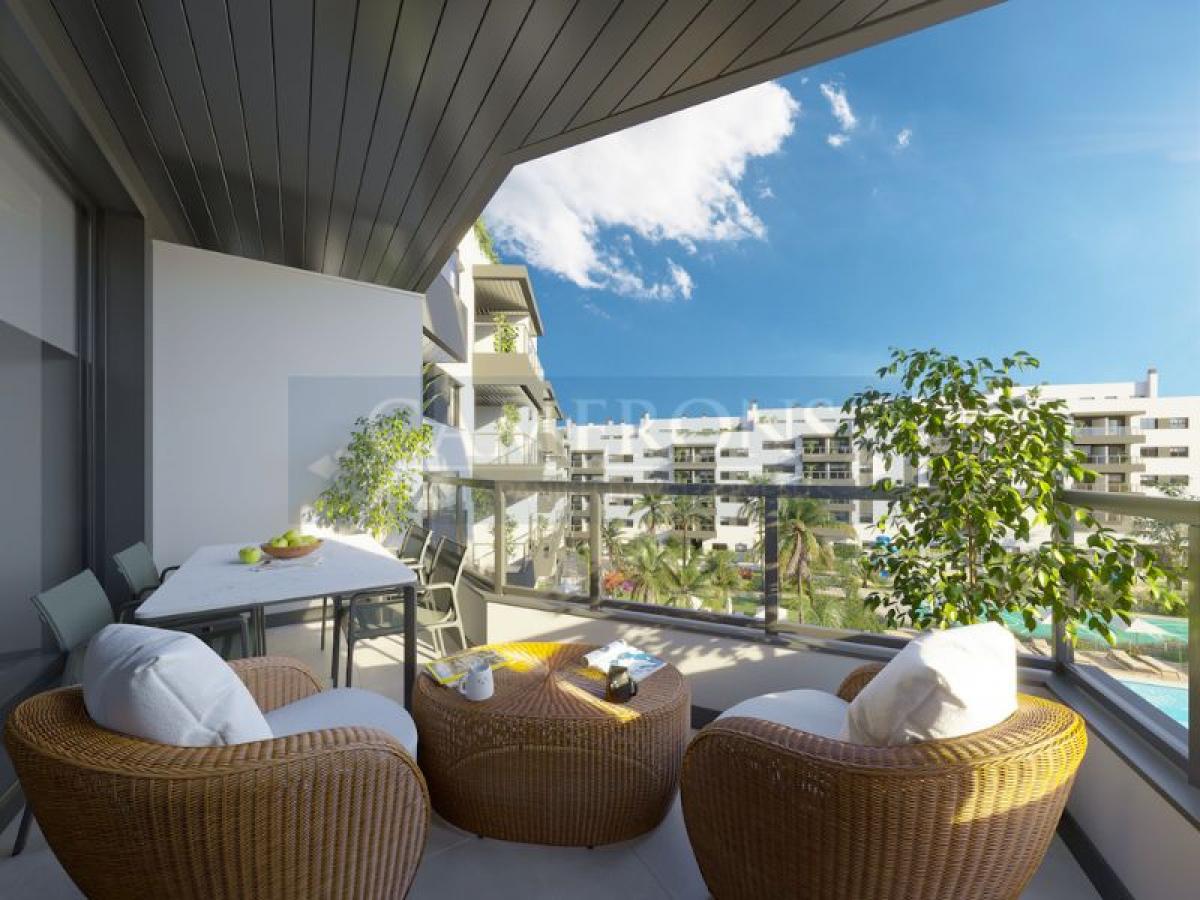 These newly built apartments and penthouses are located between Mijas Costa and Fuengirola. The residential complex consists of 2 and 3-bedroom apartments and penthouses, 15 minutes walk from the beach of Fuengirola. In addition, there is a large communal swimming pool, sundeck, climbing wall, and a children's play area. The new construction project of homes with breathtaking views. Just a 15-minute walk from the beach and the 11-kilometre-long promenade of Fuengirola. Here you will find various restaurants, bars, and shops. Truly the most modern and newest complex of Mijas! In the immediate vicinity of Suite Mijas you will find the shopping centre El Corte Ingles, the municipal sports centre Las Lagunas, various shops, restaurants, and bars. In short, perfectly located for everyday life and necessary services. The water park is a 5-minute walk away.