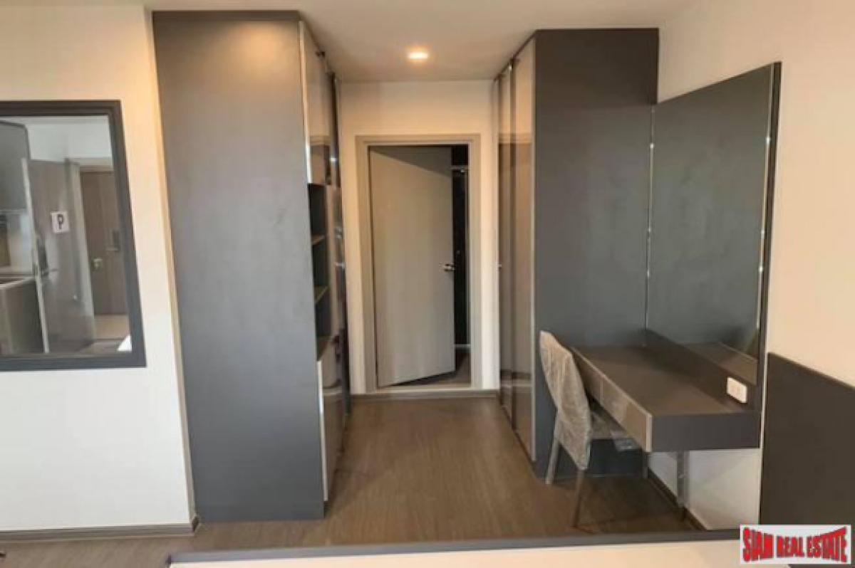 This one bedroom, one bath condo for sale is in a newly finished building in the very convenient location of Mo Chit and close to the Grand Bang Sue station. A cozy furnished apartment, it comes with lots of built-in furniture. Situated in the middle floor of the building there are great views of the nearby park.There is an open living plan that includes a kitchen with a stovetop, microwave, refrigerator and washing machine. The bedroom has an ensuite bathroom with a glass walk-in shower.