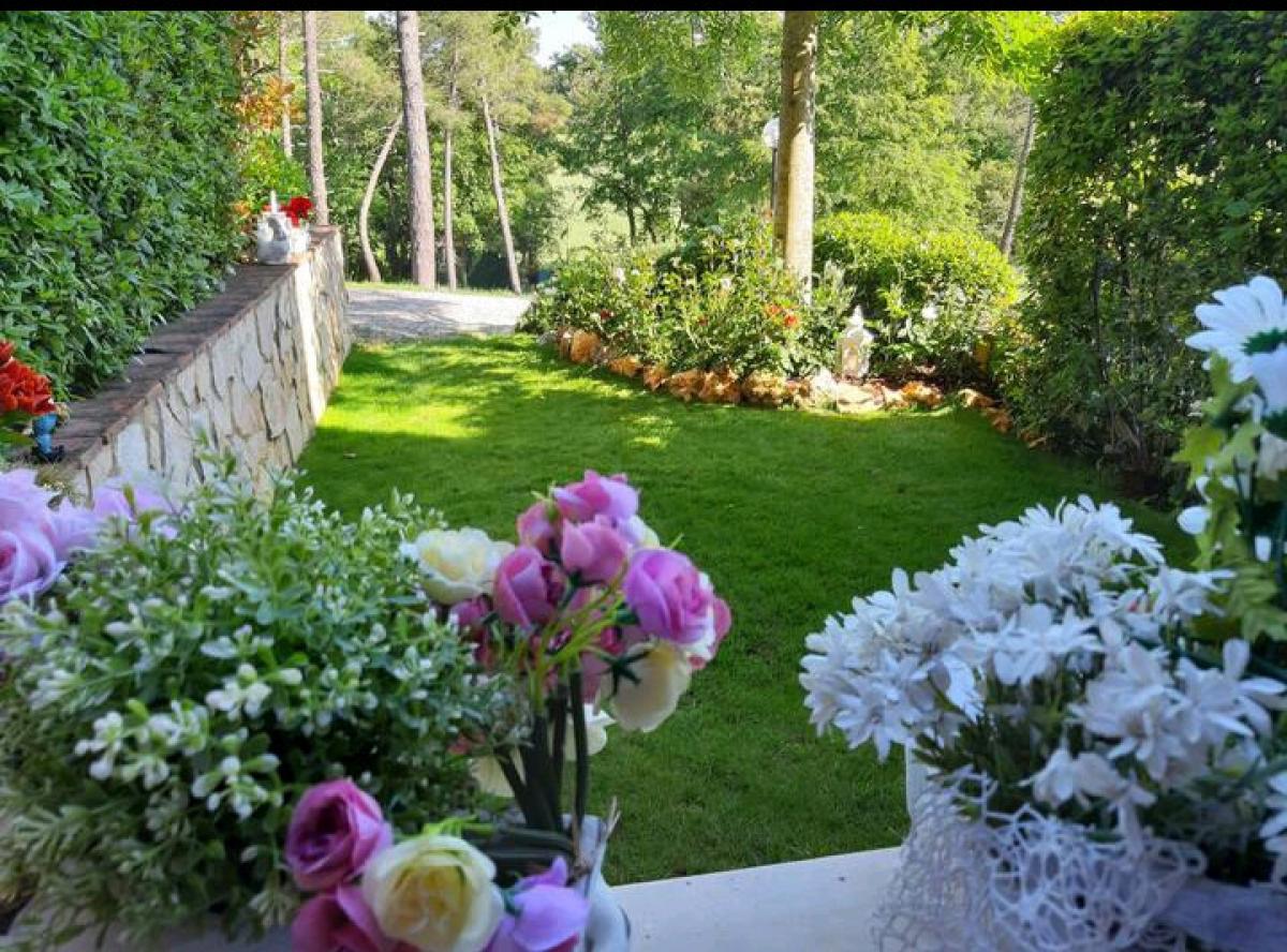 The apartment for sale consists of; entrance on the ground floor into an open plan area with storage room and laundry area. From the living room is access to the garden with open views of the Tuscan hills.