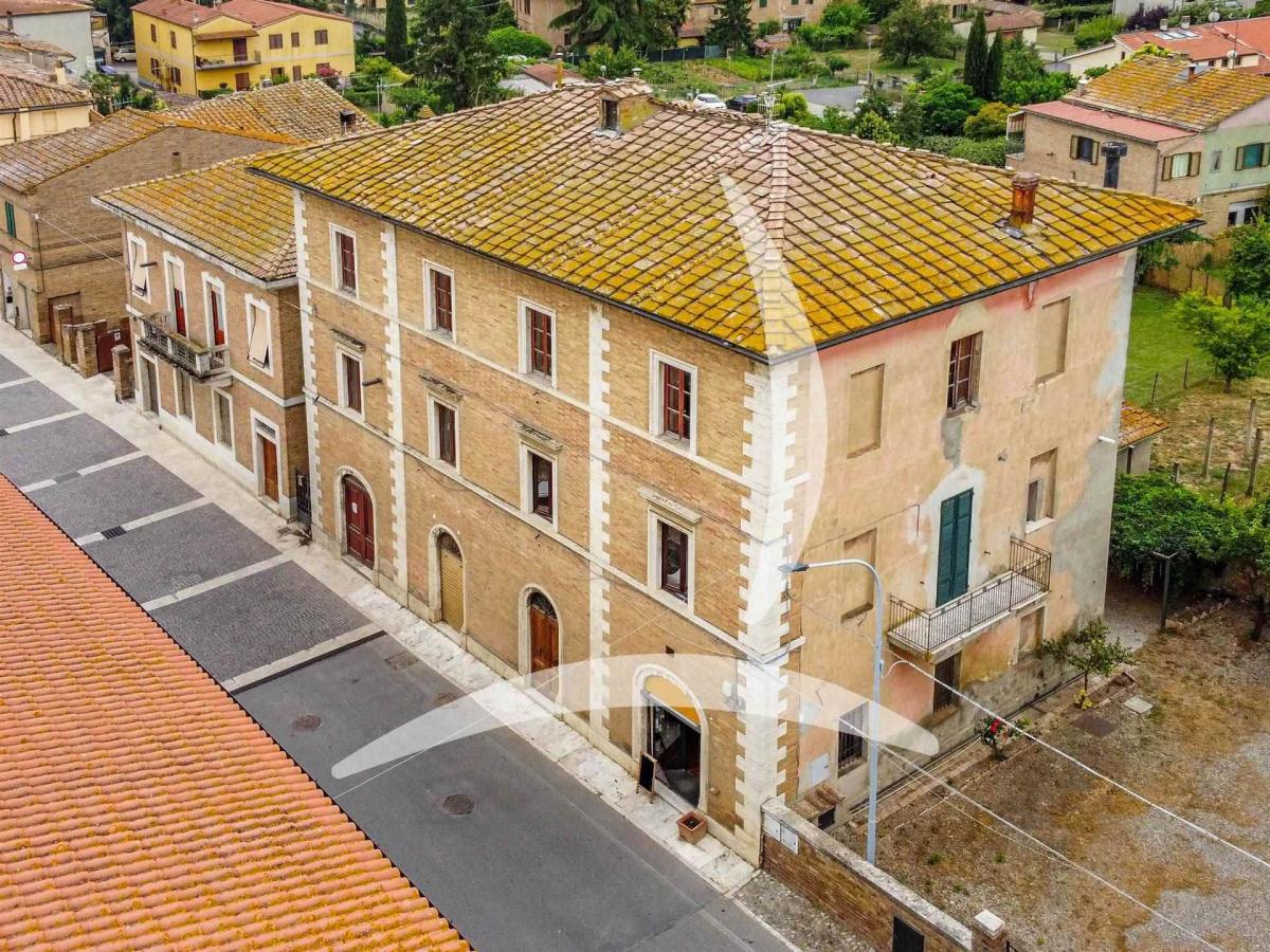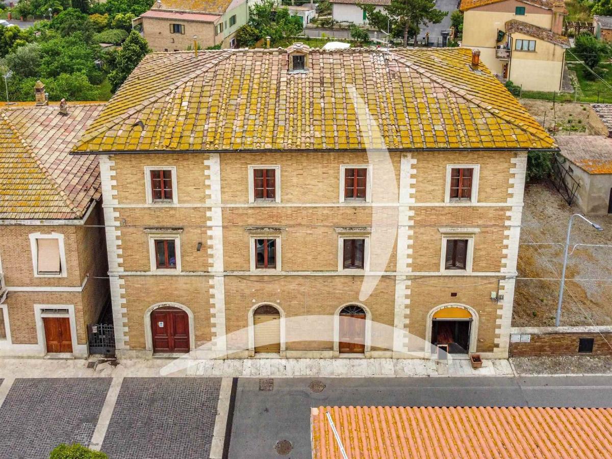 in the charming historic center of Torrenieri, just a few kilometers from Montalcino, this historic building is for sale, consisting of three apartments. The main apartment on the second floor spans six rooms, including three spacious bedrooms and a bathroom. The high-quality coffered ceilings and the double-facing windows offer panoramic views of the square below and the gardens extending towards Mount Amiata.