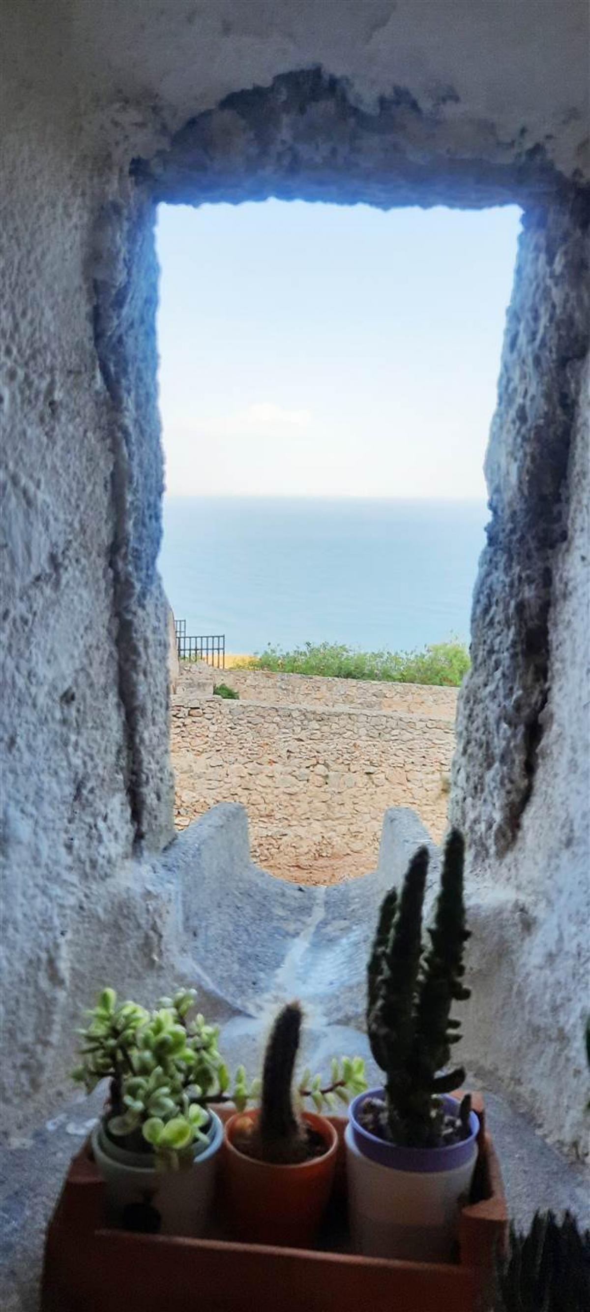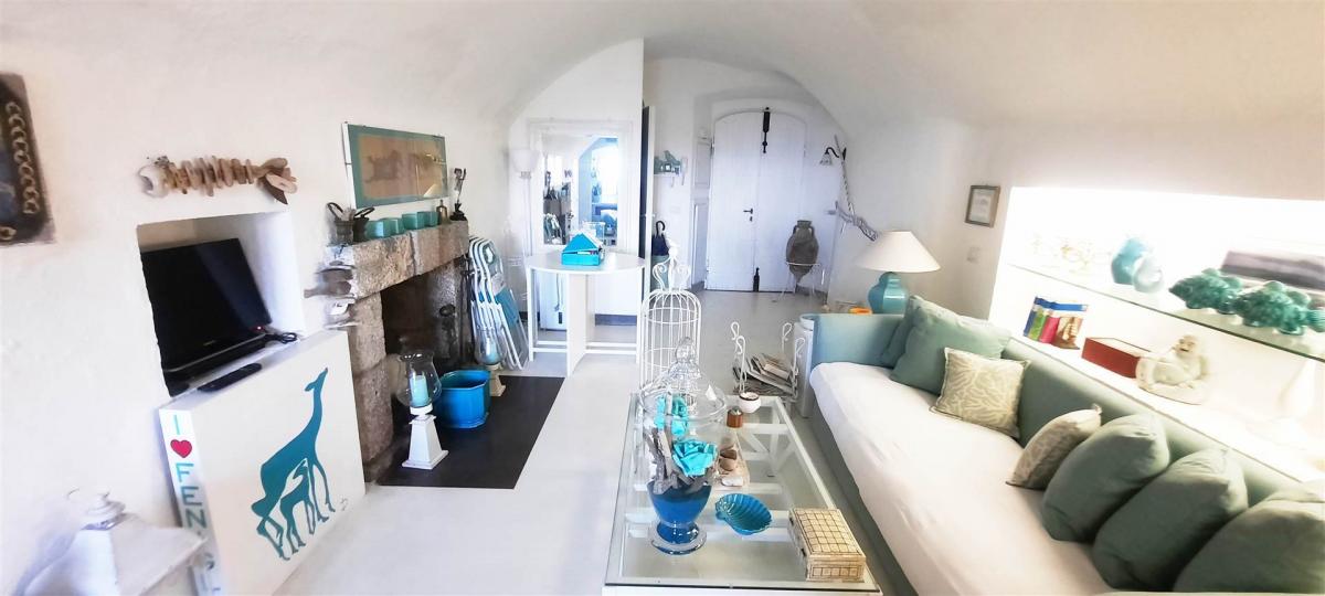The apartment is spread across multiple levels, with its own independent entrance. On the ground floor, you enter into the living room with an antique fireplace and panoramic sea views, creating a welcoming and refined environment. A few steps up leads to the separate kitchen, with a dining area, where you can enjoy meals while taking in the beautiful views.