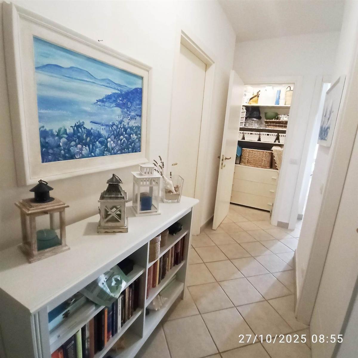 The outdoor space is one of the strongest features of the property: the terrace provides an extraordinary sea view and becomes a natural extension of the living area. The private courtyard at the entrance enhances practicality and independence, making the apartment suitable both as a main residence and as a holiday home. A 15 sqm garage on the ground floor completes the property, perfect for a car or additional storage—a valuable asset in an area where parking is highly sought after. The location is peaceful yet close to services, nature, and the beaches of Monte Argentario.