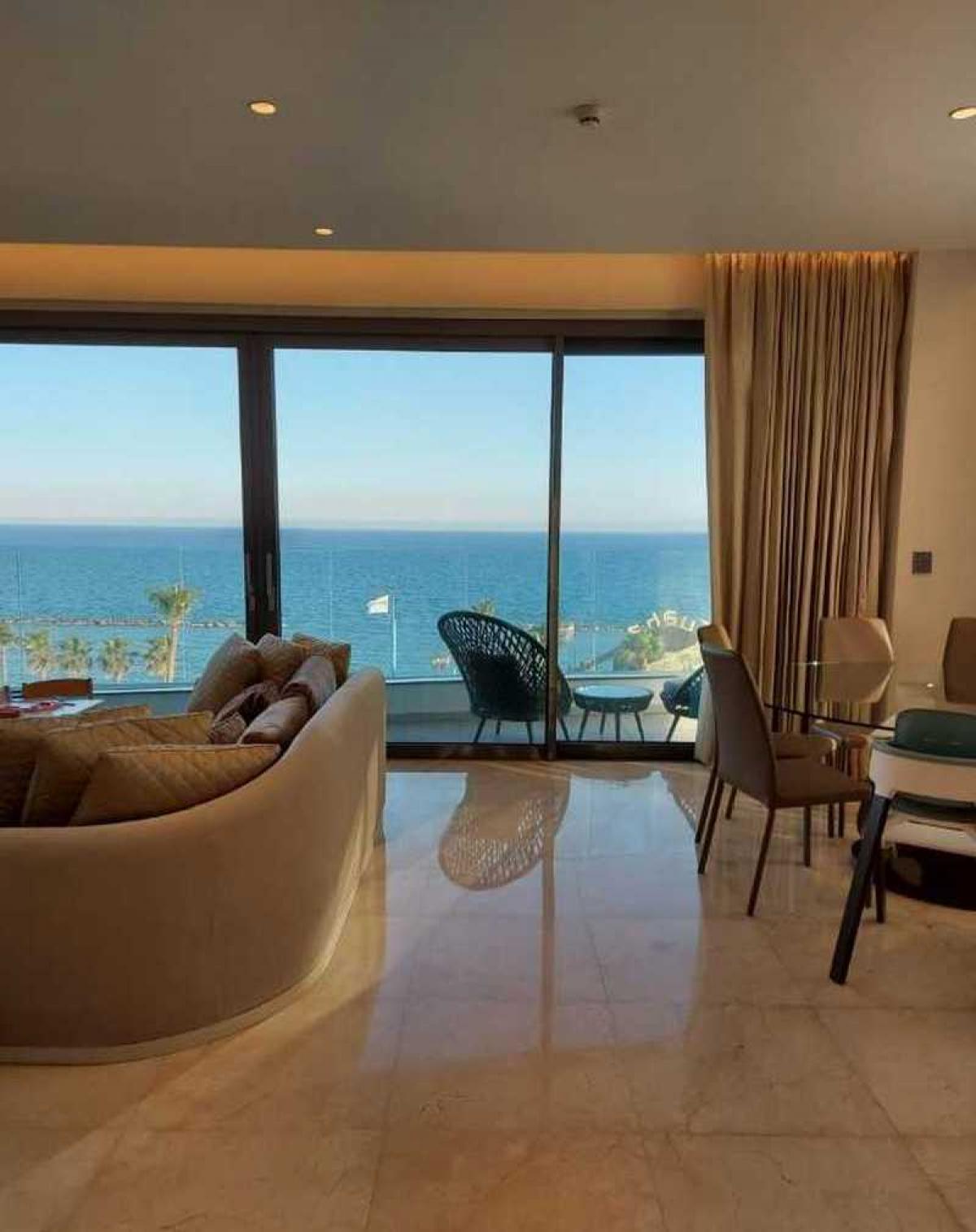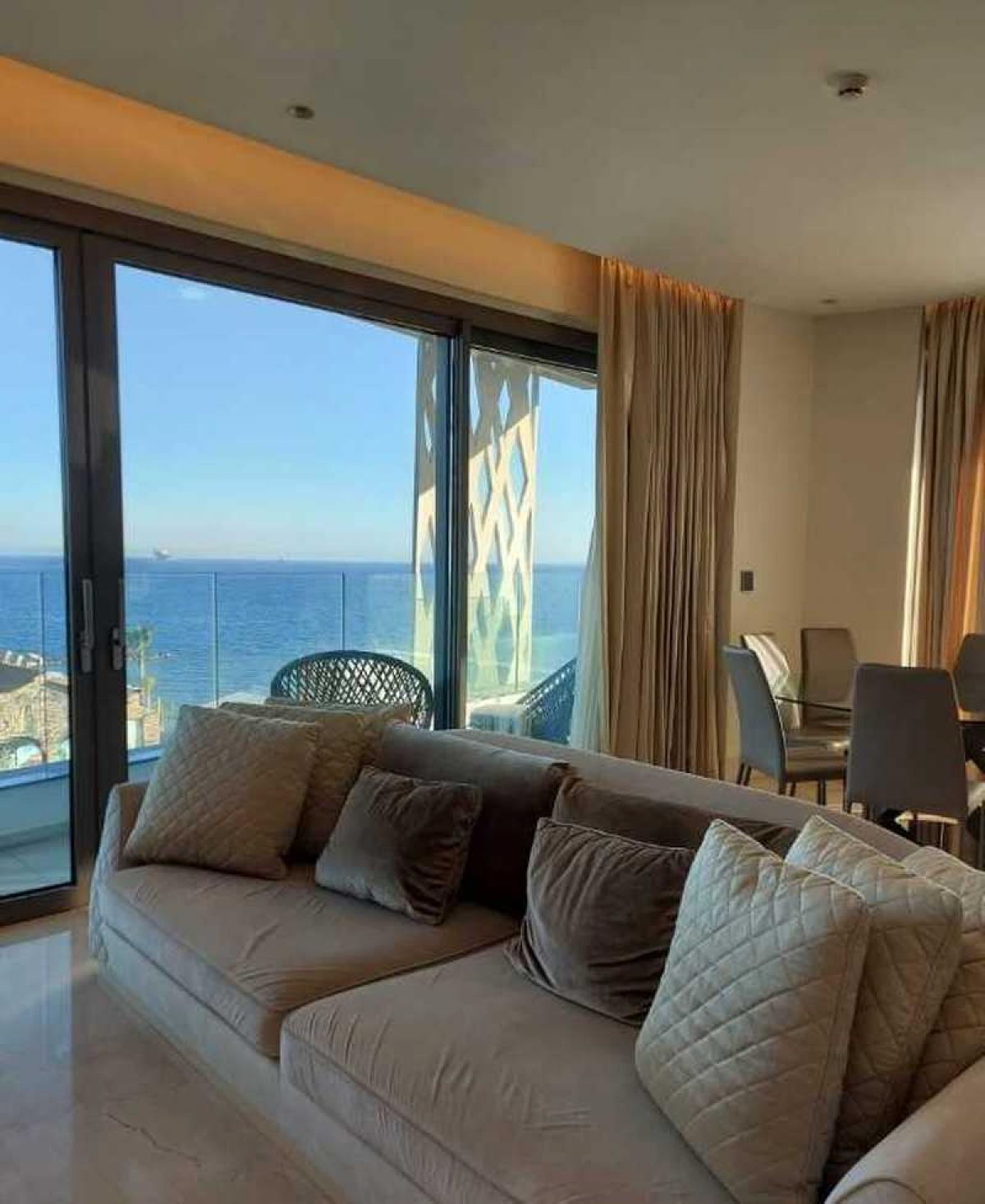 Reference ID: #SA32351Price details: €1,300,000A beautiful 3-bedroom beachfront apartment with iconic architecture is located in Mouttagiaka tourist area.The apartment is fully equipped and furnished with high-quality electrical appliances, high-tech home automation systems, and known furniture brands.The automation system controls the lighting, A/C units, electric curtains & music from the main panel, and Smartphone.The apartment has luxurious marble floors covering the living, dining, kitchen, corridor areas, and bathrooms.It consists of 1 master bedroom en-suite and 2 bedrooms with a shared bathroom, as well as a guest toilet.A front and side veranda with beautiful sea and city views. Also, it has a parking space and a storage room.The building offers hotel facilities, including a concierge, room service, catering, steam bath, sauna, as well as a sea view gym, swimming pool & lounge area.A renowned worldwide chain restaurant is currently situated on the ground floor.Lounge area (Furnished, A/C Unit, electric curtains & blinds)Dining area ((Furnished, A/C Unit, electric curtains & blinds)Kitchen (oven, hob, hood, fridge/freezer, washing machine, dishwasher, blinds)3 Bedrooms in total, including 1 en suite bedroom (Furnished)All bedrooms include A/C Units and Curtains/Shutters3 Bathrooms in total, including 1 guest bathroomVerandasLED lighting fittingsStorage roomParking placeAutomation system, including lighting system, A/C system, SONOS music system, electric curtainsCeiling speakers in all areas of the apartmentHigh-End-Pull ButtonsUnderfloor heatingFull security and privacy systemsReference number: SA32351