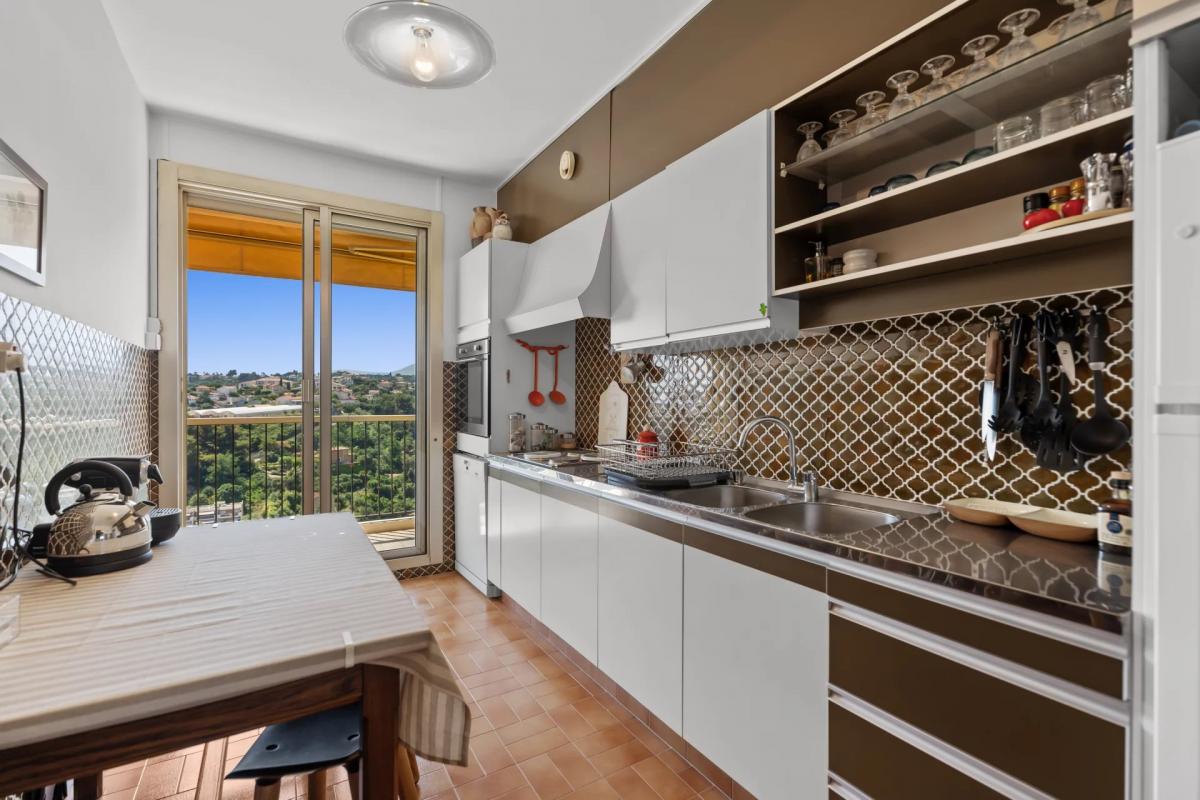 The result of uniting two apartments it offers generous volumes, 2 entrances and breathtaking panoramic views stretching from Cap Ferrat across the Bay of Angels to Cap d'Antibes.
