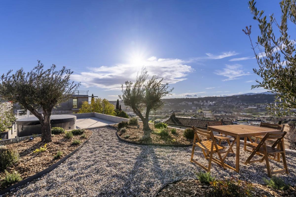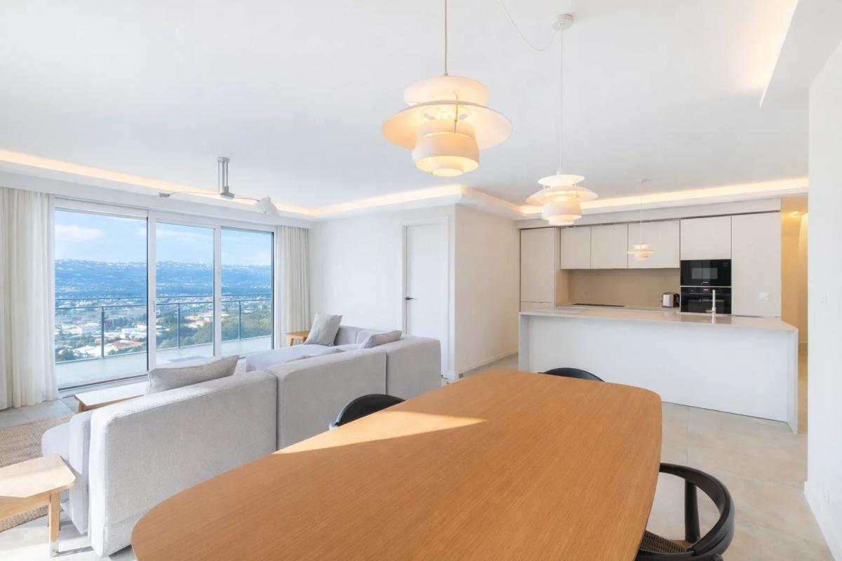 The apartment is southwest-facing and bathed in light, a magnificent 5-room apartment with three en suite bedrooms and a master, opening onto a superb terrace of over 40m2 and featuring a roof terrace of almost 50m2 with panoramic hillside and sea views, a jacuzzi and a garden. The apartment is sold furnished with a fitted and equipped kitchen.