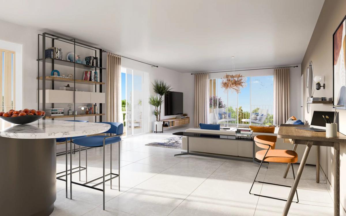 The apartment is southwest-facing and bathed in light, a magnificent 3-room apartment with two bedrooms, a shower room, opening onto two terraces and featuring a 30m2 roof terrace with panoramic hillside views, a jacuzzi and a garden. The apartment is sold furnished with a fitted and equipped kitchen.