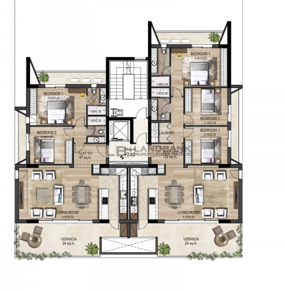 The apartment boasts generously covered areas, ensuring a spacious and comfortable living experience,offering 120sqm of internal area plus 28sqm of covered verandas.