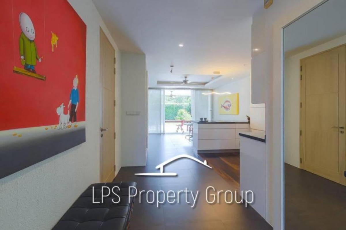 Spacious one bedroom condo for sale at the luxury Baan Ing Phu development situated in West Hua Hin 2 minutes drive from the famous Black Mountain Golf Course and Hua Hin International School. Shopping and restaurants are nearby and to reach downtown Hua Hin will take you about 15 minutes drive. The condo unit has a total area of 140 sqm (90 sqm inside living space + 50 sqm external terrace space). There is a spacious covered terrace leading out to the condo garden and swimming pool. Inside you will find a modern KVIK kitchen in white high gloss finish, beautiful wooden floor, granite countertops, wine cabinet, oven, microwave, 4 burner stove and integrated refrigerator. The kitchen is connected with a spacious dining area. The bedroom is with an en suite bathroom, built in wardrobes and beautiful wooden floor. One more bathroom is connected with the living room (which easily could be converted back to the original 2nd bedroom, if preferred). At the main entrance there is a large storage and laundry room (with washer and dryer). The Baan Ing Phu development is know for its high standard of building quality and its lovely community feel. There are many full-time residents in Baan Ing Phu and they all enjoy its 5 star service. There is a full-service restaurant and bar, 24h security a tennis court, a paddle court and a very well equipped fitness centre. The condo unit is the perfect full-time living option, but could as well be great for long holidays in Hua Hin.-