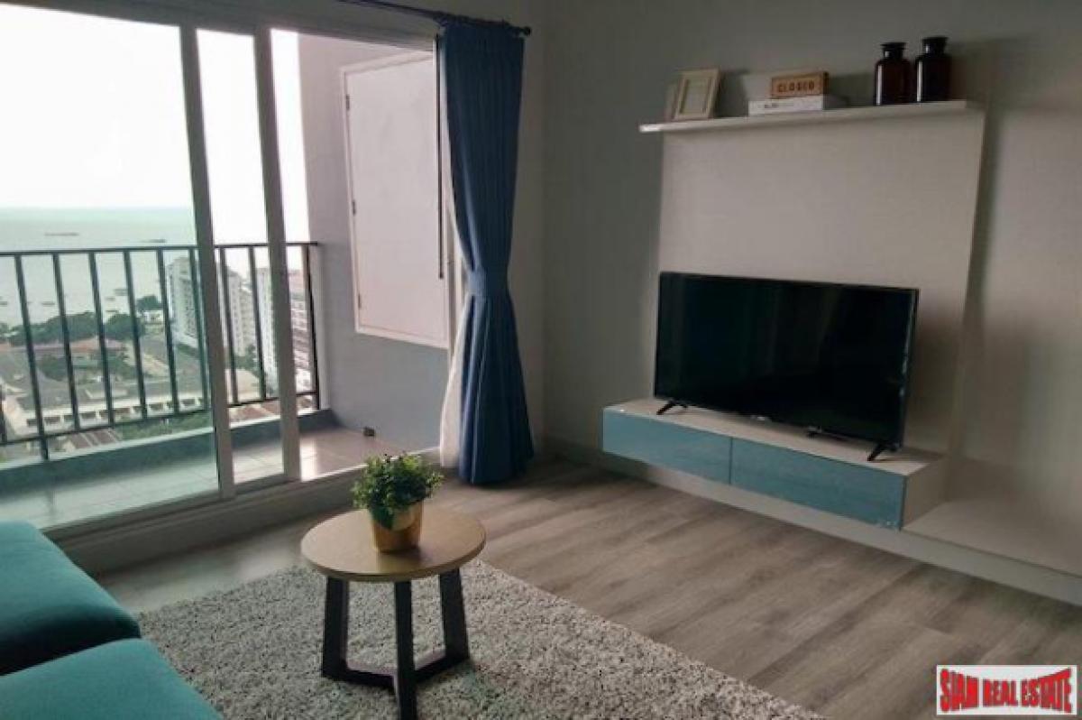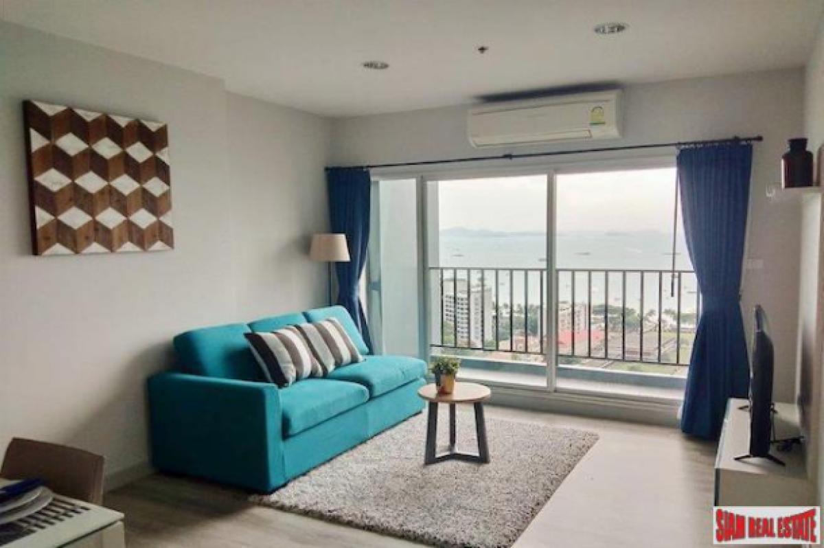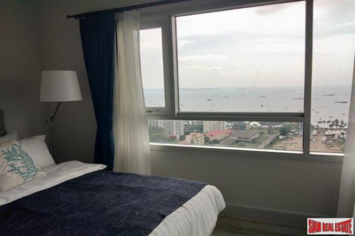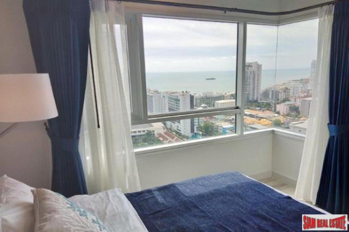 Located on the 28th floor this 60 sqm two bedroom condo for sale has great sea views. Each room has floor to ceiling windows that highlight the views. There is an open living plan with a sofa, dining table that seats four and a western kitchen. The kitchen includes a stovetop, refrigerator, microwave and a washing machine.Both bedroom are spacious and have built-in wardrobes. There is an ensuite bathroom in the master bedroom. The apartment comes with a TV and Internet, Cable TV, Satellite TV, SMART TV and Free WiFi.