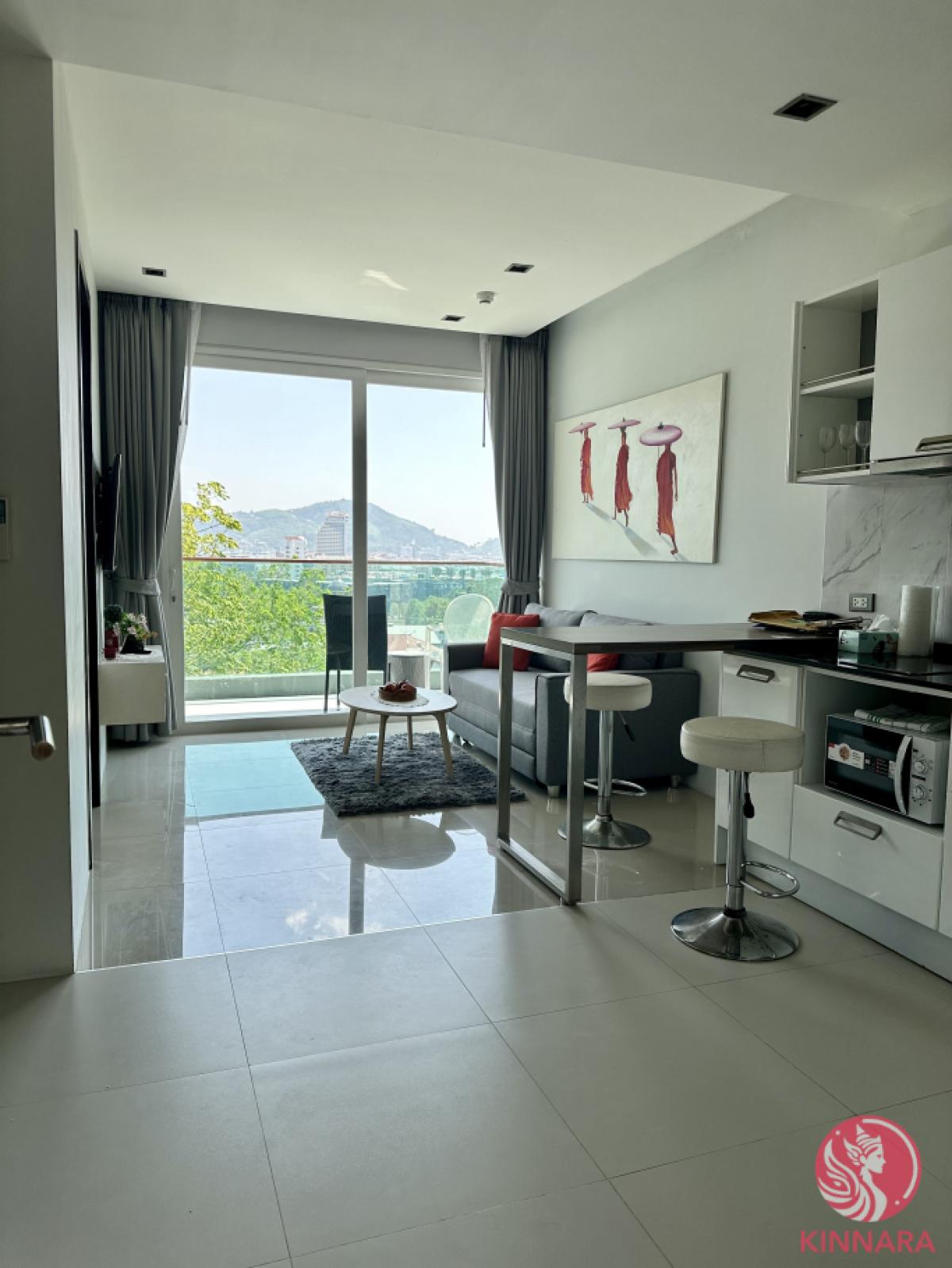 1 Bedroom Apartment Seaview PatongElegance Redefined in PaTongDiscover unparalleled comfort in this fully furnished one-bedroom condo, nestled in the heart of Pa Tong, Kathu, Phuket. Situated on the 5th floor of The Emerald Terrace, a mid-rise development of 141 units, this freehold gem spans 54.67 sqm of meticulously designed living space.Opulent Interiors and Breathtaking ViewsThe living room, an embodiment of modern luxury, features large windows offering city vistas, a light-filled room with a neutral color palette, and direct balcony access for an immersive outdoor experience. The bedroom, enriched with a large bed and modern design, showcases mountain views and wooden flooring, extending to an outdoor balcony. The contemporary kitchen is equipped with marble wall design, stainless steel appliances, and bar stool seating.Exclusive AmenitiesApart from luxury, comforts like a spacious bathroom with glass shower enclosure and a vanity with storage, to a serene balcony offering panoramic views of the surrounding greenery and city every detail ensures a life of ease and sophistication. This condo represents a unique blend of modern living and natural beauty, making it an ideal haven for discerning buyers.5th floorFreeholdPrice 5,800,000THB