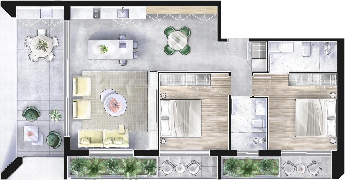 Each apartment has Energy Efficiency A , Smart Home System and VRV air conditioning.