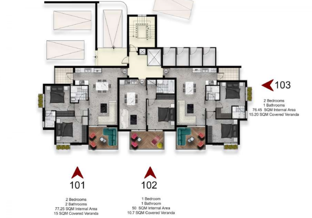 For sale 2 bedroom apartments in a new, gated complex in the center of the Pareklissia district. There are 10 apartments in the building, designed with great care: 5 two-bedroom apartments, one penthouse (two bedrooms), 5 one-bedroom apartments, two penthouses (one bedroom). Facilities: gated residence, storage facilities, terraces, cable TV, provision of photovoltaic systems, roof garden.Reference number: 100866