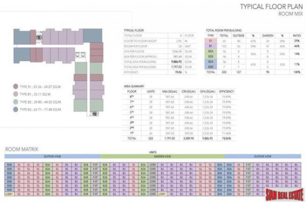 The Condos and Serviced apartments will offer true luxury living. Enter through the main doorway with the latest key card technology and be greeted with a tastefully designed interior, modern kitchen, large windows and high ceilings. In addition, the beautiful, large private bathrooms come with the highest level of floor to ceiling tiling and Grade A fittings. Energy saving air conditioning, LED lighting and smart technology electrical sockets and power switches will come as standard. Outside, enjoy stunning views from your private balcony. The 691 fully equipped Condos and Serviced Apartments are spread over four, 8 Storey Buildings. Various Room Types are available from Studios to 1-2 Bedrooms.