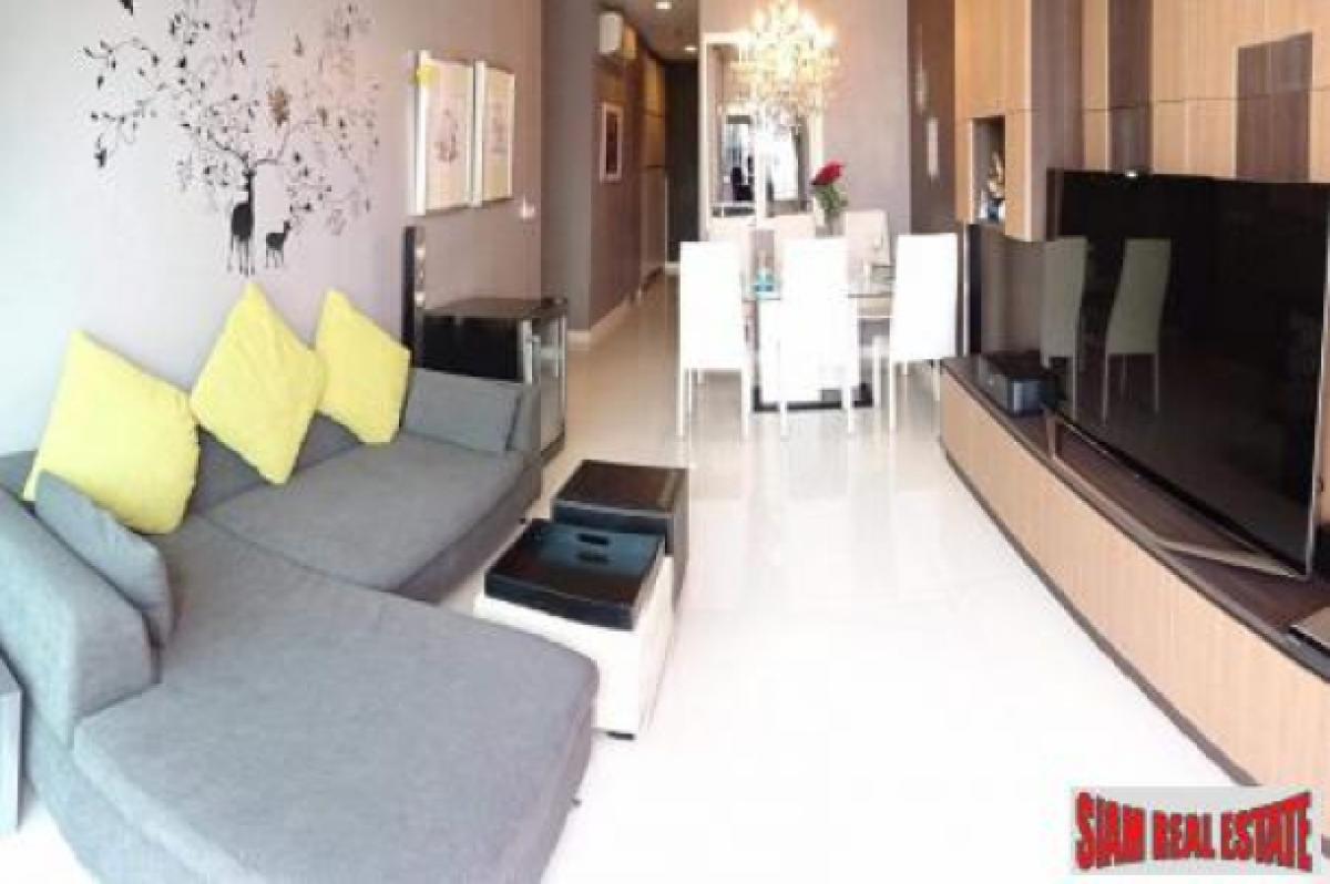 A large Three bedrooms, Two bathrooms condo is for Salel within walking distance to BTS Prakanong staiton. The apartment is 88 sqm. and is situated on the high floor with nice city views. The open living plan is spacious with a living room, dining area and a western kitchen , central island. The kitchen comes with a stovetop, oven, microwave and refrigerator. There is a big counter and many cabinets for storage. In the living room there is a comfortable sofa, coffee table and TV and the room opens out to the balcony.The master bedroom is large room has a big bed, wardrobe and has an ensuite bathroom with bathtub , a walk-in glass shower. A second bedroom comes with a big bed and.The guest bathroom is separate and also has a nice glass walk-in shower.