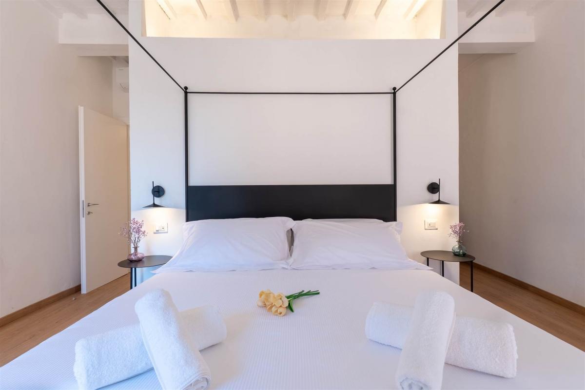 The renovation masterfully combines historic character with modern functionality, preserving authentic details like exposed wooden beams and wide windows overlooking the picturesque streets of the town.