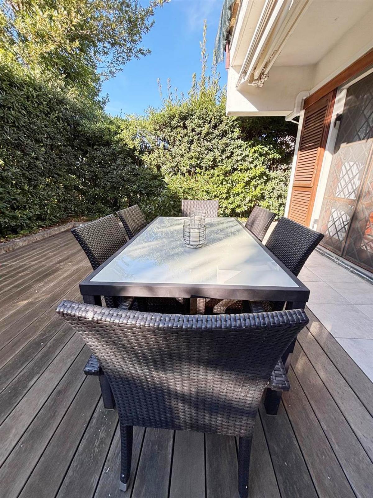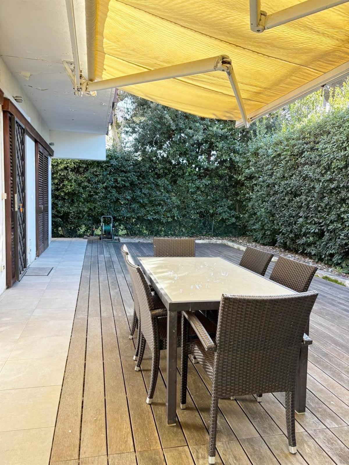 The true highlight of the property is the large private outdoor space of approximately 95 sqm, a garden surrounded by greenery that ensures maximum privacy and tranquility. The livable terrace is equipped with a large automatic awning, making it the ideal spot for summer dinners and outdoor relaxation. The apartment is situated on a quiet, no-through road, just 500 meters from the beach—easily reachable on foot—and a short distance from the entrance to Versiliana Park. The property also includes an external private parking space.
