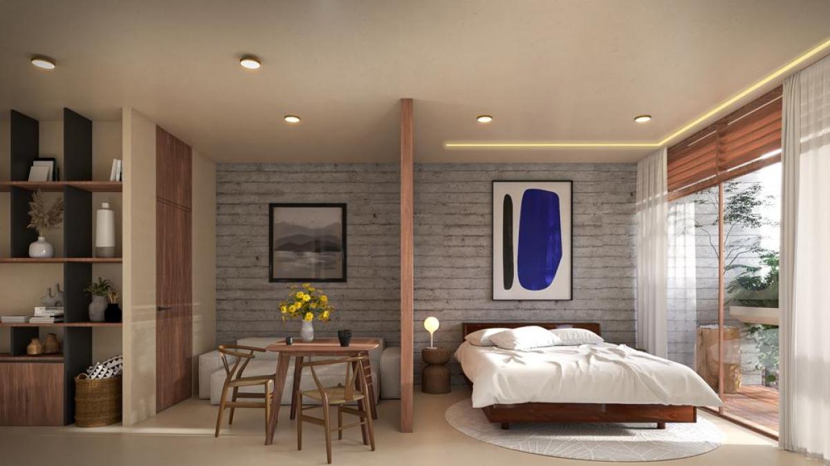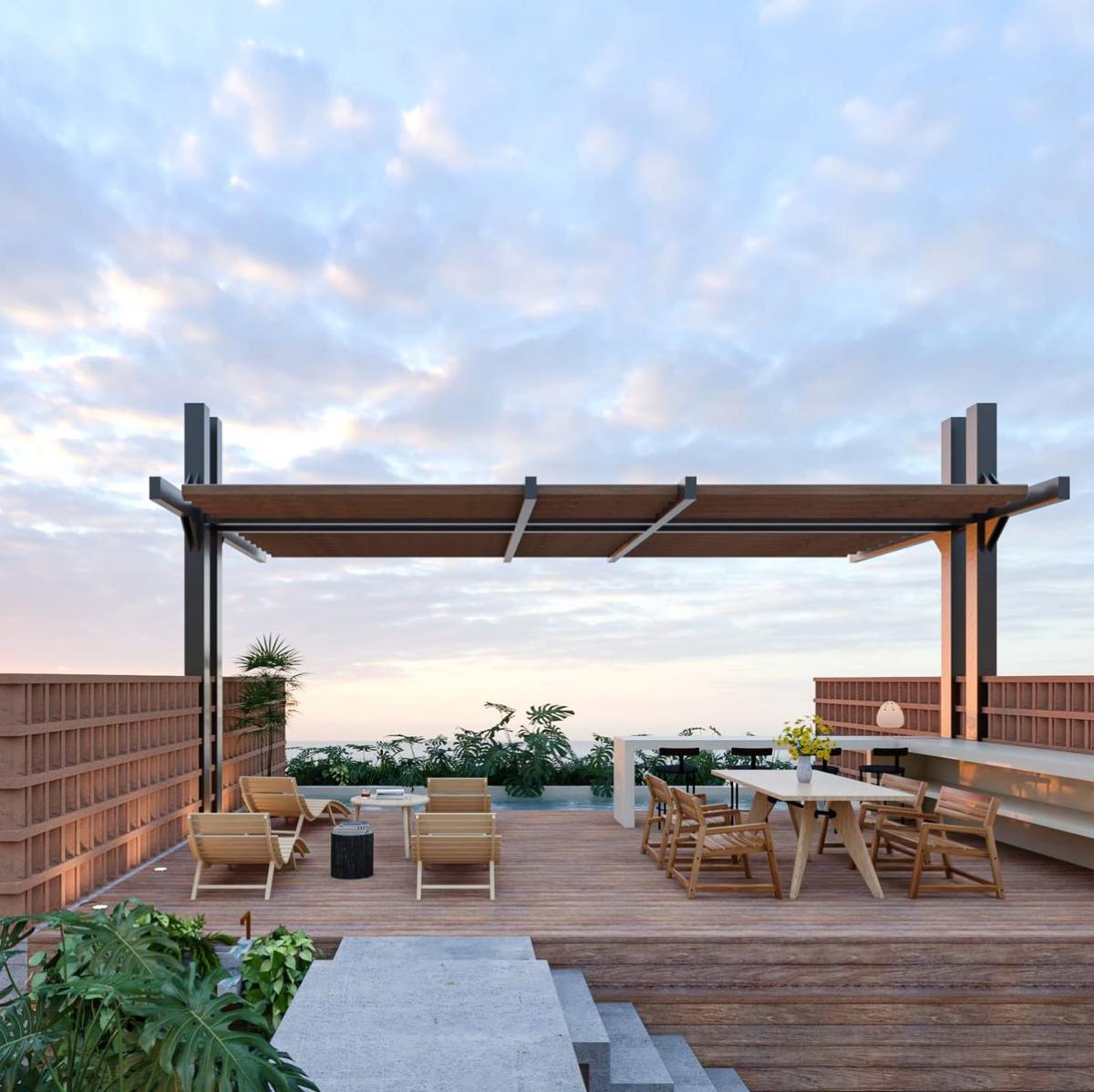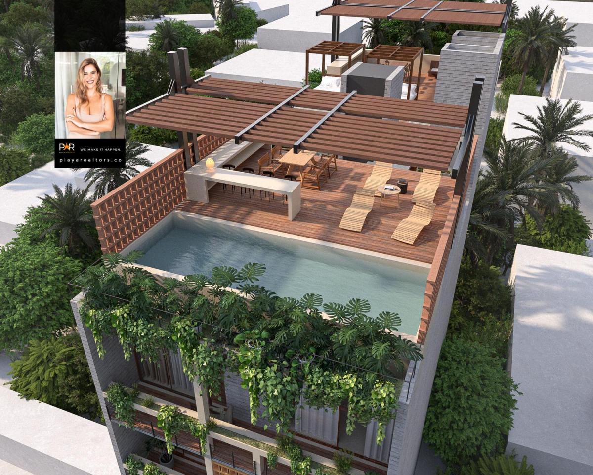 This exclusive boutique development offers only 19 meticulously designed units, ranging from 40.1 m2 (432 sq ft) studios to 78.5 m2 (845 sq ft) 2-bedroom apartments. Each unit comes fully furnished with contemporary style, featuring integrated kitchens, private terraces, and high-end finishes like porcelain tiles and teak decking. The double-height lofts add architectural sophistication, perfect for those seeking unique, character-filled spaces.The project stands out for its harmonious integration with nature, offering amenities including a pool, jacuzzi, rooftop lounge and bar, vertical gardens, solarium, and green areas. Security is prioritized with 24/7 surveillance and controlled access. Its vacation-rental optimized design ensures high demand, thanks to its prime location in Playa del Carmen's exclusive "Golden Zone," just minutes from the beach and Fifth Avenue.