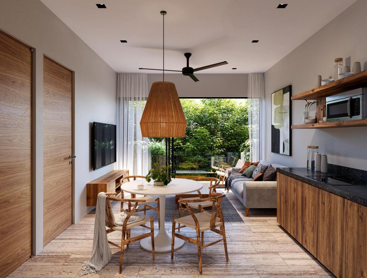 Discover an investment and lifestyle opportunity in one of the most dynamic areas of the Riviera Maya. This residential property is characterized by its minimalist architecture that harmoniously fuses contemporary design with natural materials, creating a space of timeless beauty and serenity. It is an invitation to experience a new standard of living where every detail has been meticulously considered to offer comfort and elegance.The available units include options ranging from cozy studios to spacious two-bedroom apartments, all designed to maximize space and functionality. The interior finishes are luxurious, featuring elements such as marble floors, quartz countertops in the kitchen, and bathrooms with premium finishes. Every space has been conceived to provide comfort and a sense of home from the very first moment.