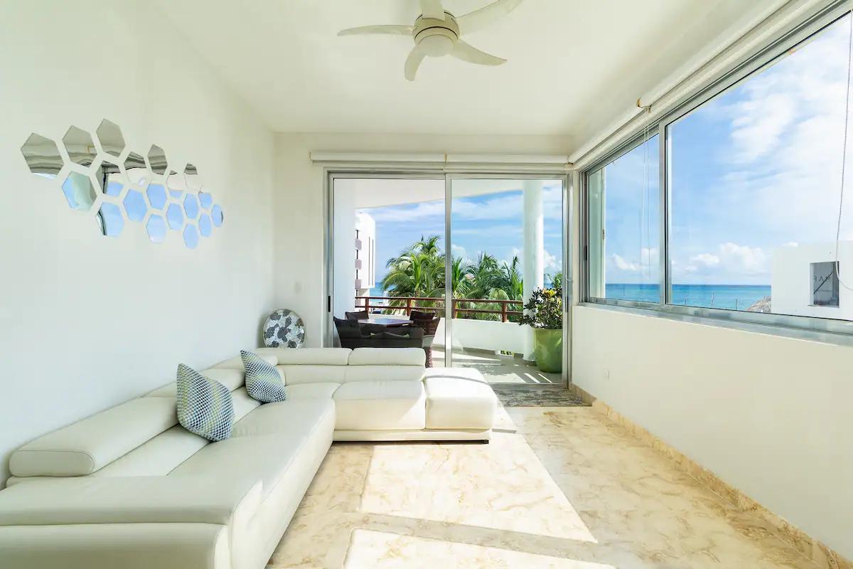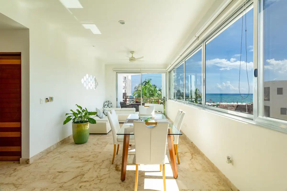This stunning oceanfront corner condo embodies the essence of beachfront living in Playa del Carmen, offering panoramic Caribbean Sea views and an unbeatable location in one of the city's most desirable coastal neighborhoods. Situated just 26 feet from the white sandy beach, this fully furnished and renovated residence provides a turn-key opportunity for anyone looking to invest in a luxury beachfront home or a high-yield income property in the Riviera Maya.