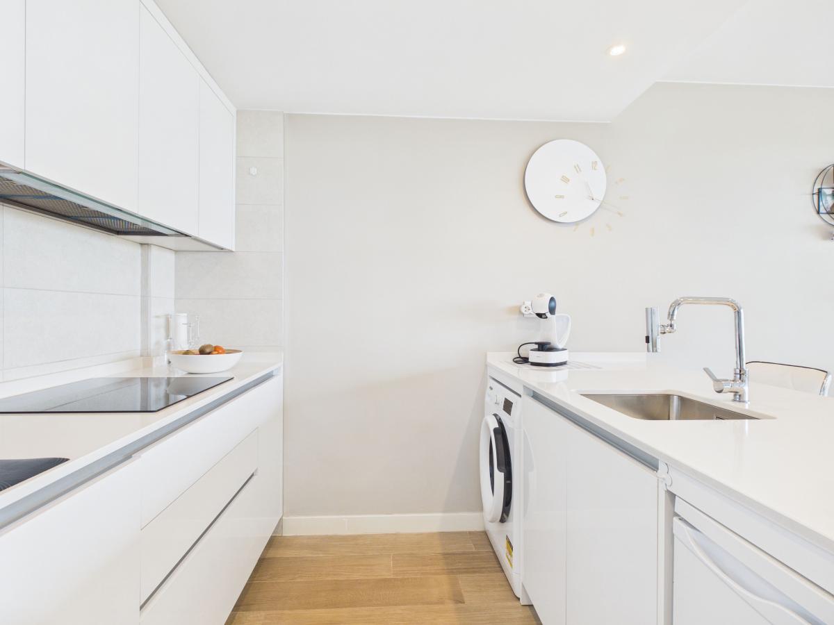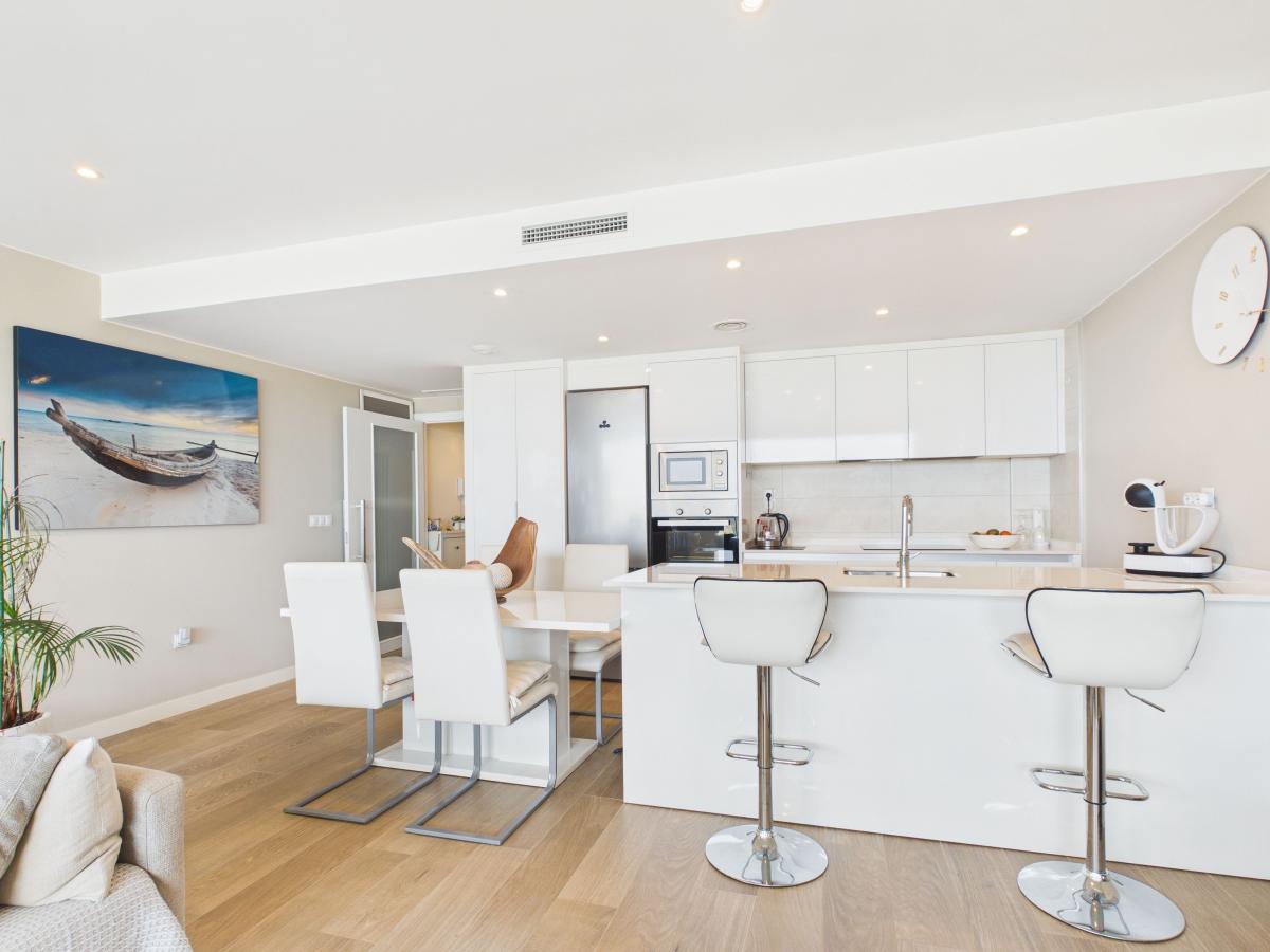 At the heart of the home is the expansive open-plan kitchen and living area, filled with sunlight and extending directly onto a generous terrace perfect for morning coffee, entertaining, or simply enjoying the sea breeze and views.