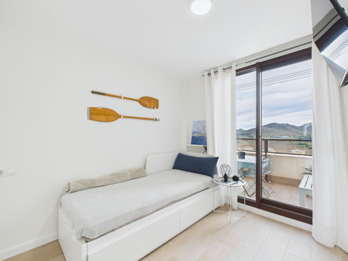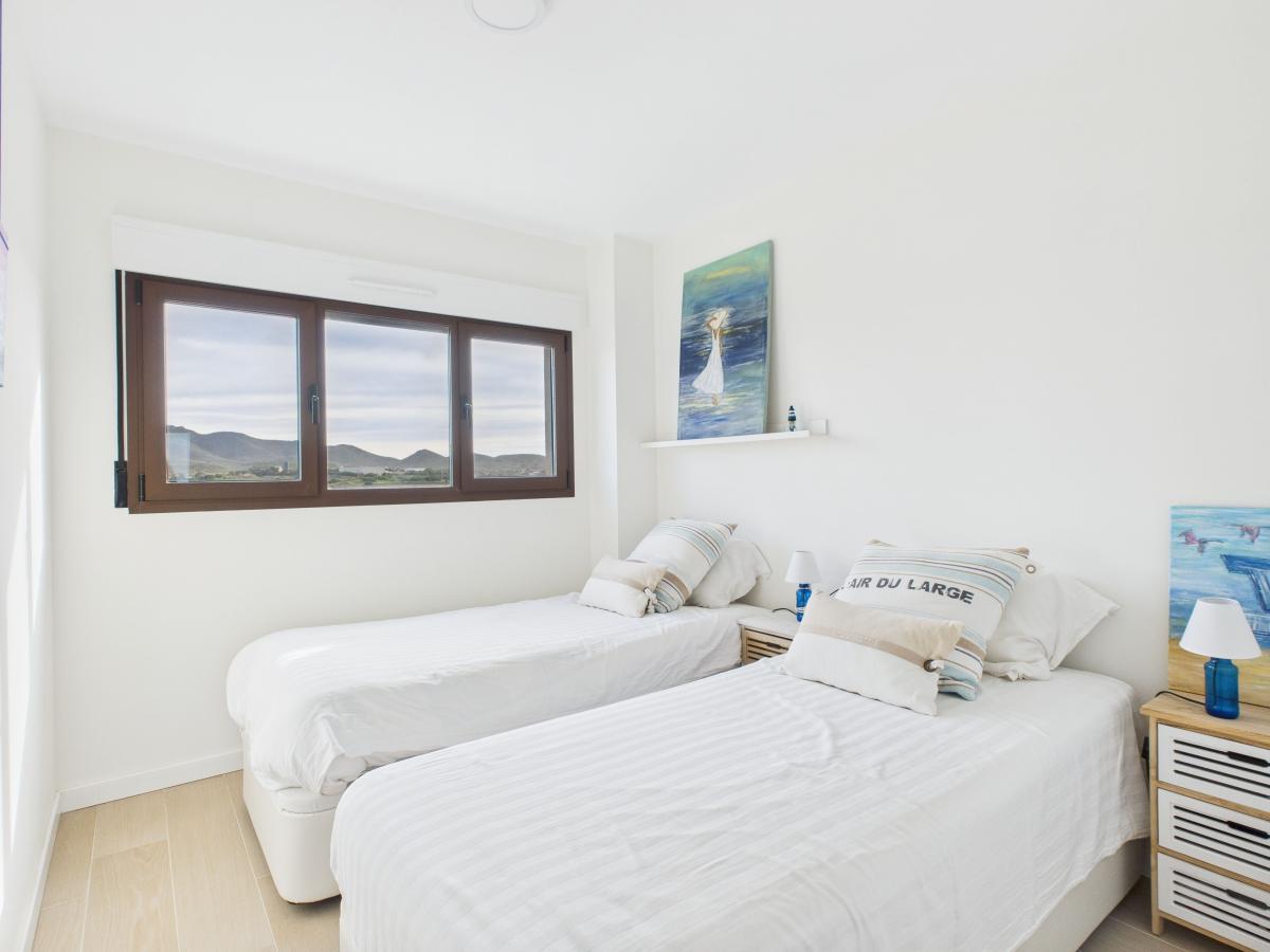 One of the guest bedrooms also benefits from its own private terrace, facing the opposite side of the complex, bringing in additional natural light and a wonderful sense of openness.