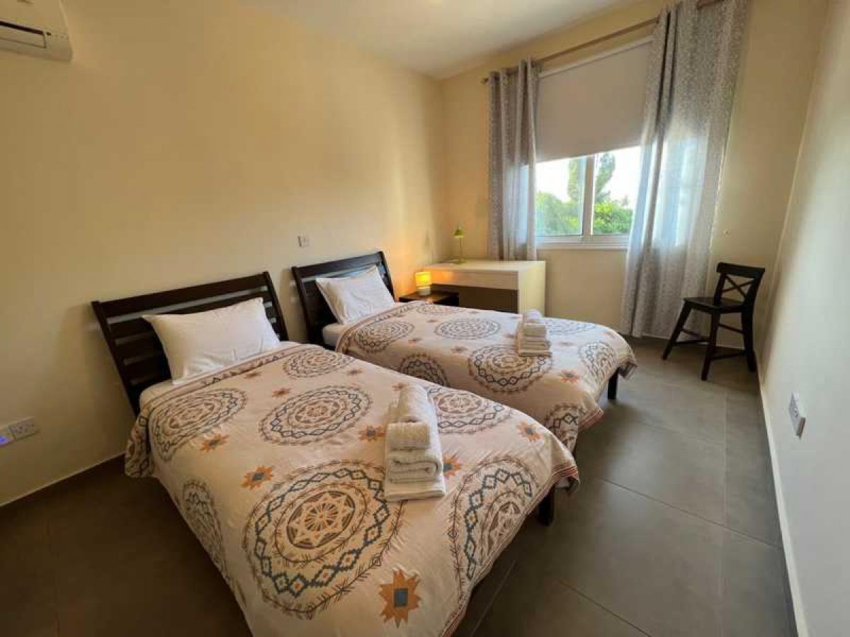 Two bedroom apartment in Evagoras Gardens complex Polis, near the Police station, first floor, modern elevator, covered parking, good condition, full air condition - large bathroom (bathtub) and guest toilet - balcony with sea-view and pool view - furniture: ready to move in.Privacy - as there is no other building screening in front of the windows or balcony! Amazing sunsets! Rare opportunity to have a decent view from an apartment building ! Good neighbours, good airbnb ROI with high ratings!