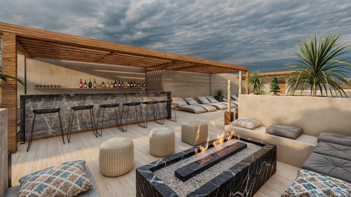 Imagine elevating your lifestyle to a new level of absolute luxury and privacy with this exceptional penthouse that includes a spectacular private rooftop. This unique property offers an exclusive space of 92 square meters, equivalent to approximately 990 square feet, designed for those seeking a superior living experience and an incomparable personal retreat. The smart design integrates a spacious main bedroom, a full bathroom with premium finishes, and a social area with a kitchenette, all flowing onto a private terrace that serves as the prelude to your own rooftop sanctuary, in this space where the sky becomes your ceiling and the sea breeze your constant companion.The true gem of this property is its private rooftop, an outdoor space conceived for maximum enjoyment and the creation of unforgettable moments. This exclusive area is equipped with a jacuzzi and a perfect social space for intimate entertainment or simply relaxing under the sun or stars, offering a feeling of freedom and expansion that triggers a deep emotional connection with the environment. Here, every sunset becomes a personal experience and every morning an opportunity to reconnect with yourself in the most absolute privacy, awakening the excitement of owning a refuge that is truly unique in the world.