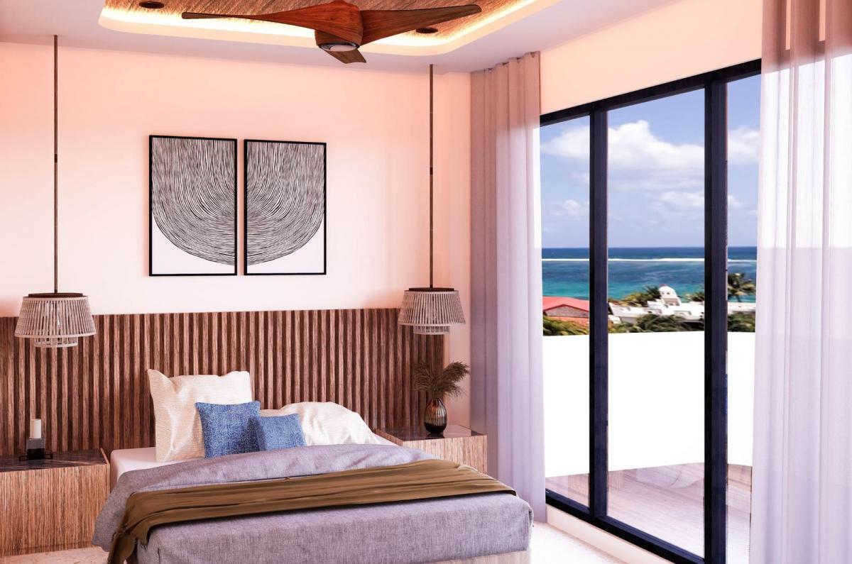 This sophisticated 105.18m2 (1,132 sq ft) condo features a smart layout with 2 spacious bedrooms, luxury bathrooms, and social areas flowing onto terraces with Caribbean views. Premium finishes, natural lighting, and functional designs create the perfect blend of comfort and style just steps from the beach, in a development that merges modernity with the authentic charm of a fishing village.With only 20 exclusive units, this boutique project offers high-end amenities: infinity pool with turquoise sea views, rooftop grill area, elegant lobby, and services like valet parking and 24/7 security. Every detail delivers a resort-style living experience where privacy and architectural design meet natural beauty.
