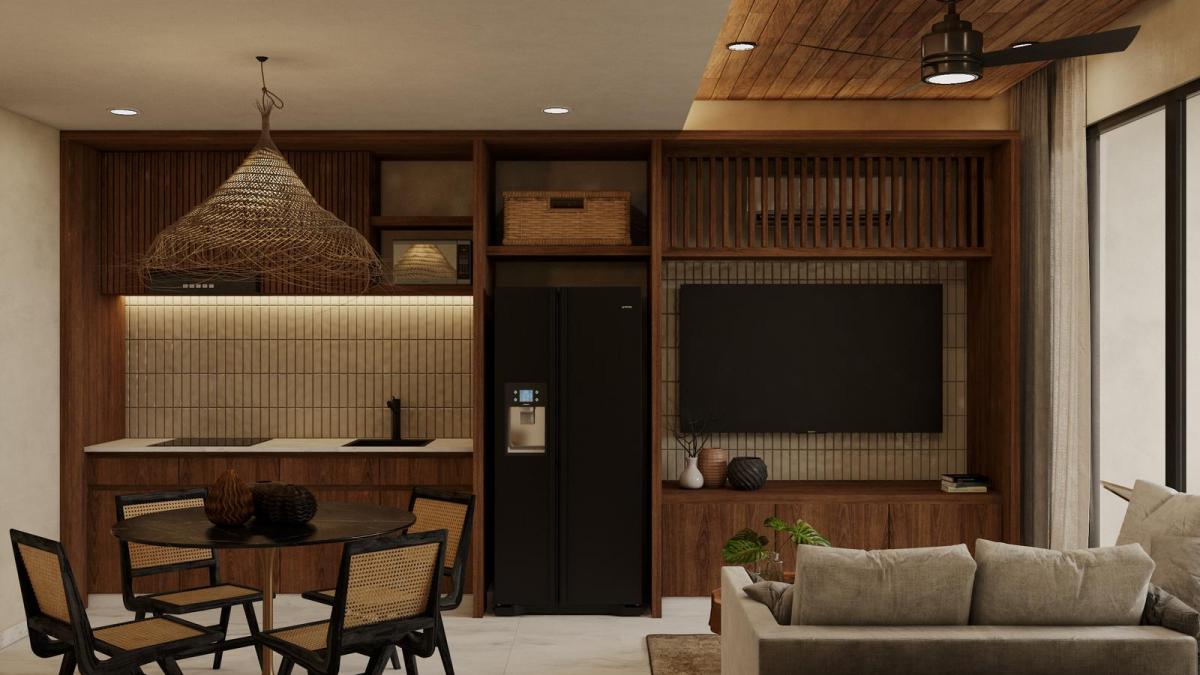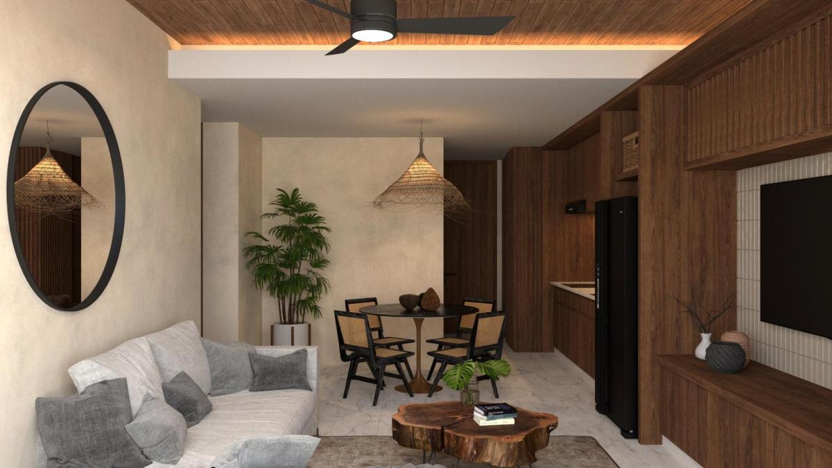 This exclusive development features 34 apartments designed for elegance and harmony with nature. Units range from cozy 1-bedroom layouts (50.5 m2 / 544 sq ft) to spacious 2-bedroom penthouses (96.5 m2 / 1,039 sq ft), all with high-end finishes and functional spaces. Each residence includes a balcony or terrace to enjoy the Caribbean breeze, while 2-bedroom options offer laundry areas and larger terraces, perfect for families or investors.Residents enjoy a privileged lifestyle with access to a swimming pool, gym, shaded lounging areas, a bar, and a grill zone. The complex also provides private parking and storage, ensuring comfort and security. The blend of contemporary design and practical spaces makes this place ideal for both living and generating income through vacation rentals, leveraging the area's high tourist demand.