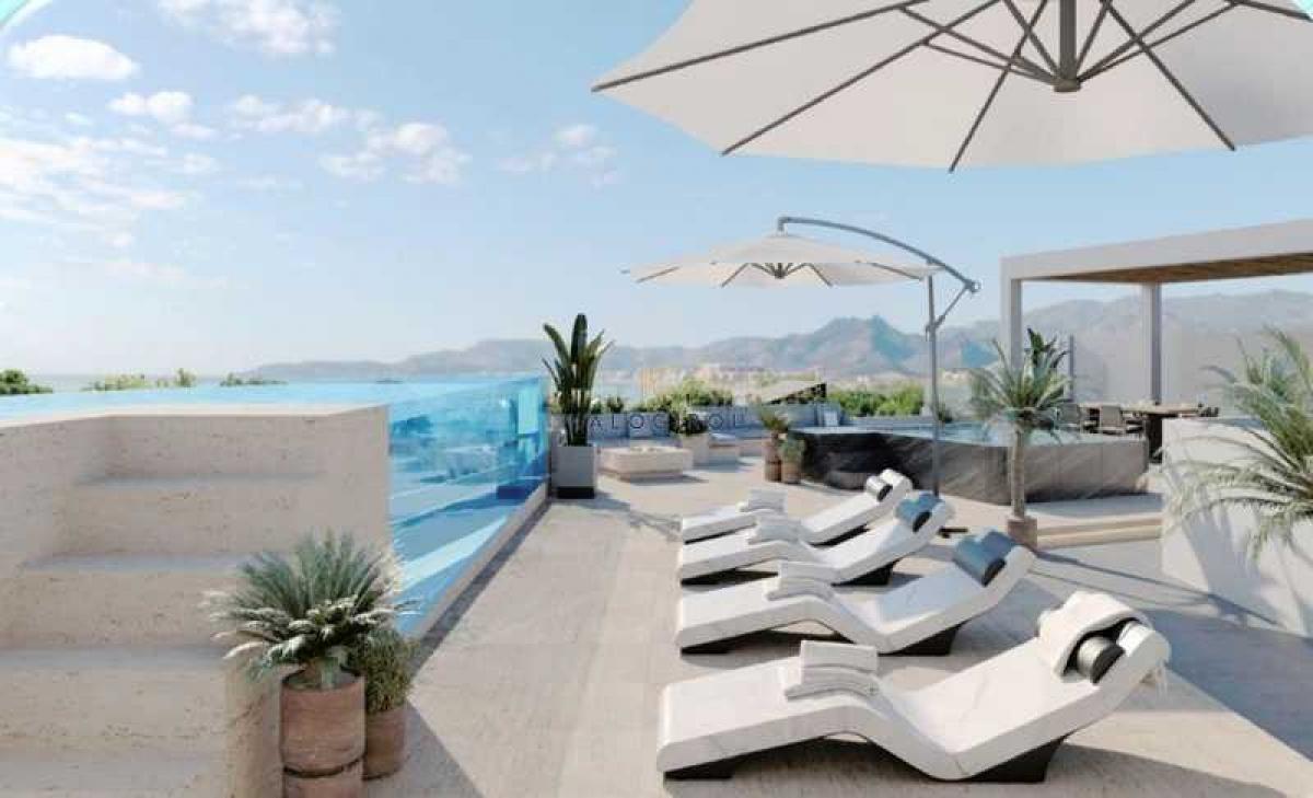 The apartment is a part of a new luxurious project of a 3-block complex with 22 apartments in total. There are 10 x one bedroom and 12 x two- bedroom apartments. The project offers communal heated glass infinity swimming pool, kids pool, fully equipped gym, snack bar, sauna, playground and playroom for the kids, reception, outdoor gym equipment and ride service to the beach.