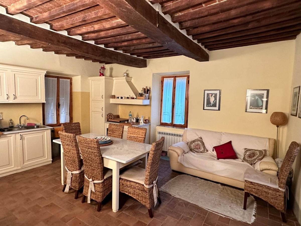 The upper floor hosts another double bedroom, a single bedroom, and a second bathroom with shower. interiors feature exposed wooden beams and 70 cm thick walls, preserving the authentic Tuscan character. The property is equipped with double glazing, new windows on the upper floor, and a 300-liter water tank for emergency use. it is sold fully furnished with custom-made artisan furniture.