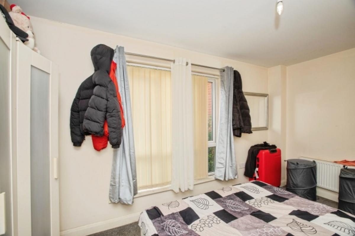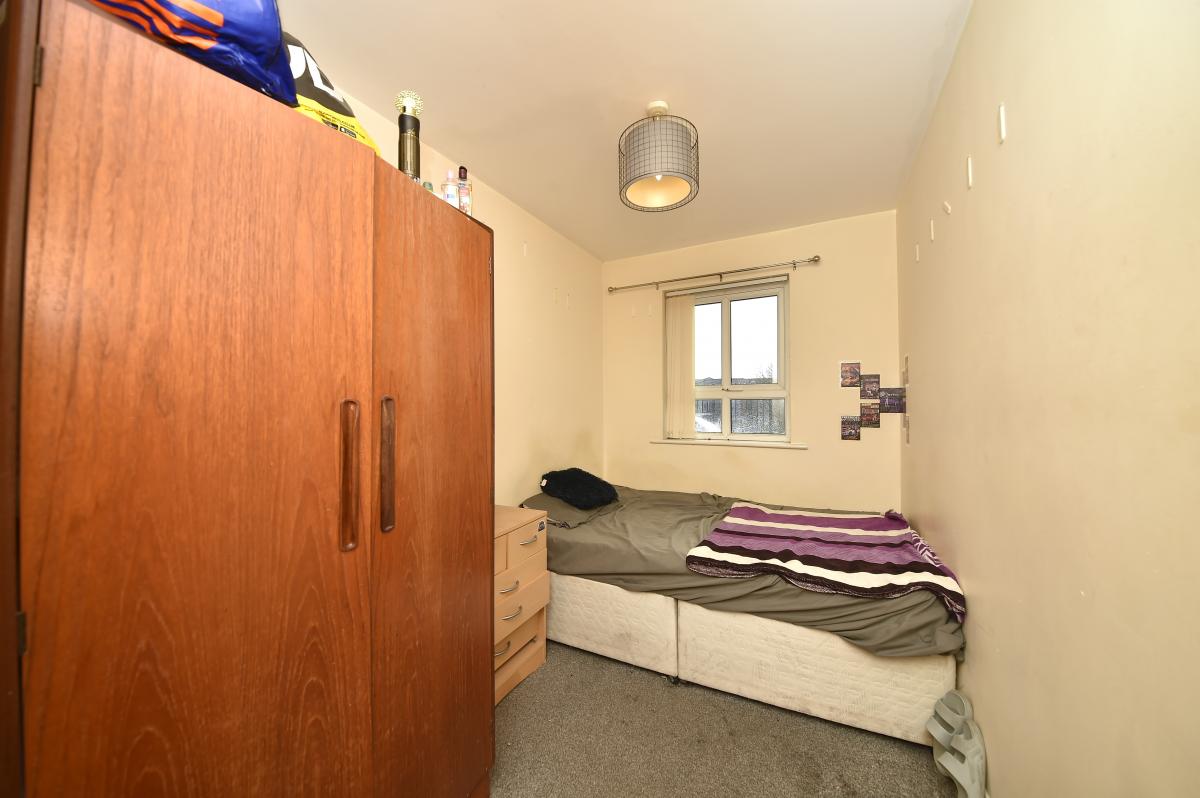 The larger of the two additional rooms currently serves as a sleeping space and offers ample room for freestanding wardrobes and bedroom furniture, while the smaller room could accommodate a single bed, home office, or hobby space. Both rooms are neutrally decorated with vertical blinds and standard radiators.