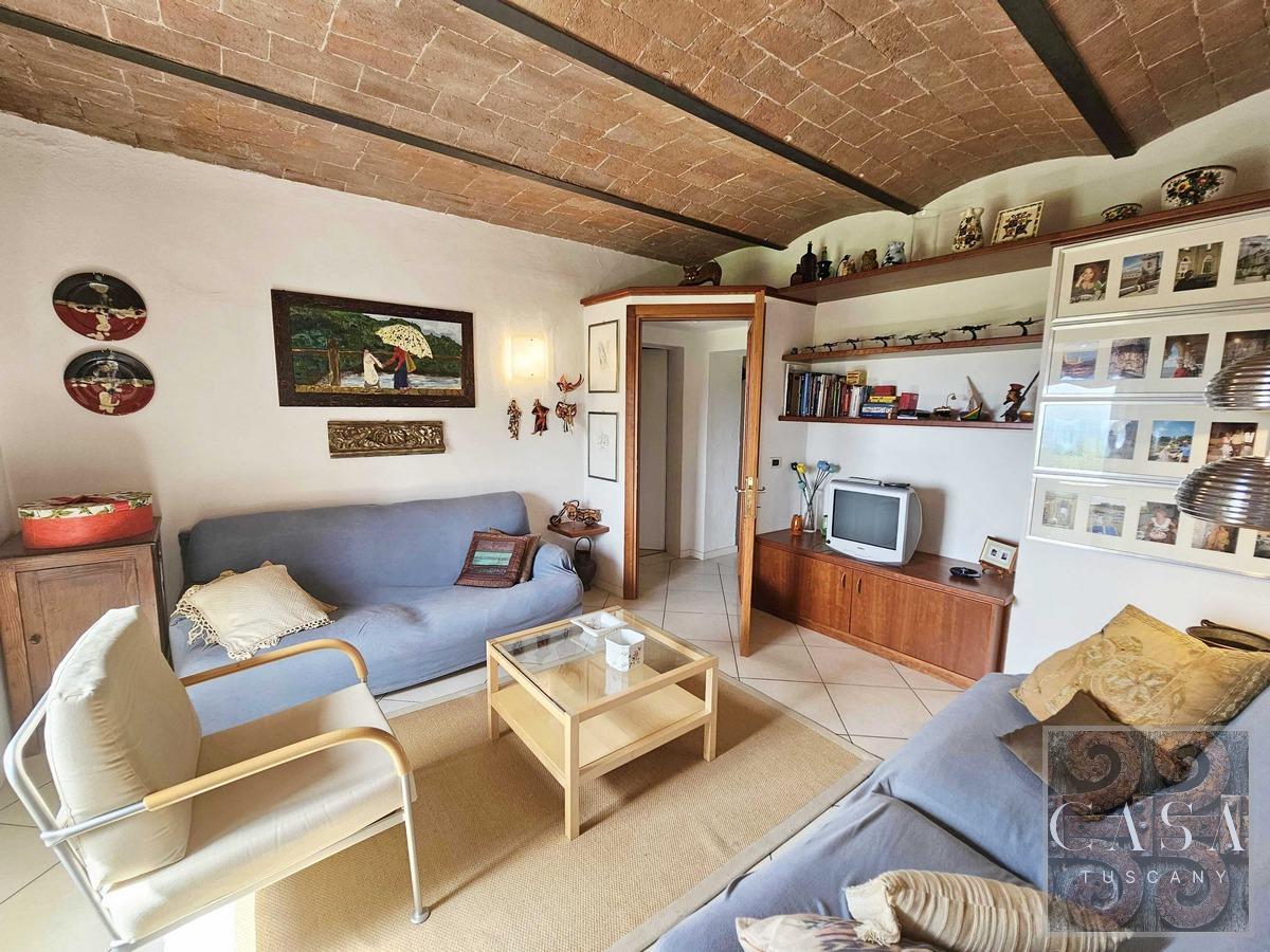 The kitchen and living room are characterized by brick vaulted ceilings and the bedrooms have parquet flooring.The apartment measures around 120 sqm gross and the garden measures around 300 sqm.