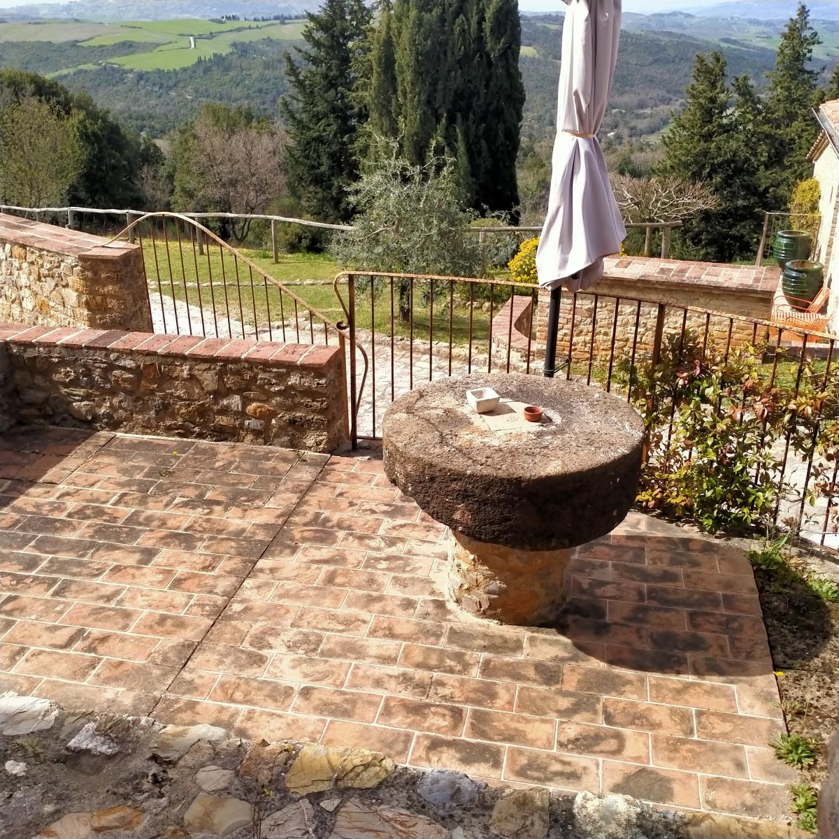 The hamlet is easily accessed by a 3 km unpaved road in perfect condition and is surrounded by luxuriant vegetation, centuries old olive trees and with stunning panoramic view over Volterra.