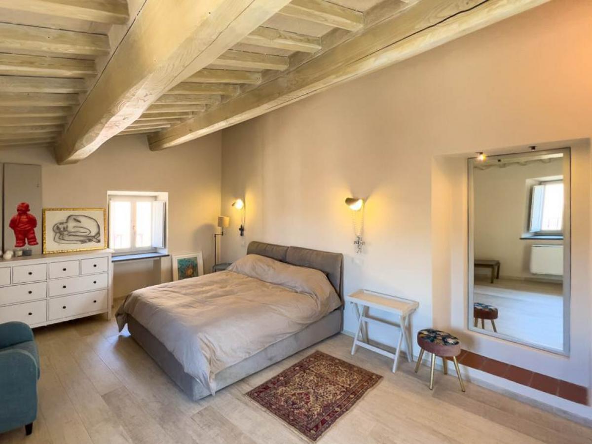 Located in the historic center of San Quirico d'Orcia, this 220 sqm apartment occupies the first floor of a stone farmhouse consisting of five units. Fully renovated between 2017 and 2020 by merging multiple apartments, it features refined interiors and a contemporary style. The entrance opens into a large living room with modern fireplace, followed by a spacious kitchen with central island and access to the panoramic terrace. The sleeping area includes a bedroom with en-suite bathroom, a second bedroom with private bathroom, a third tower bedroom and a technical room with laundry.