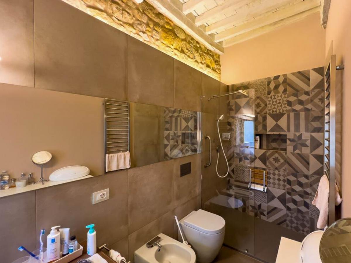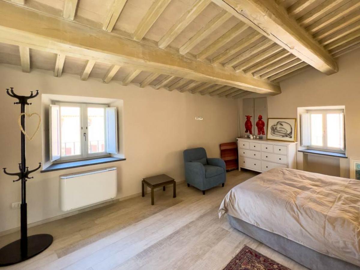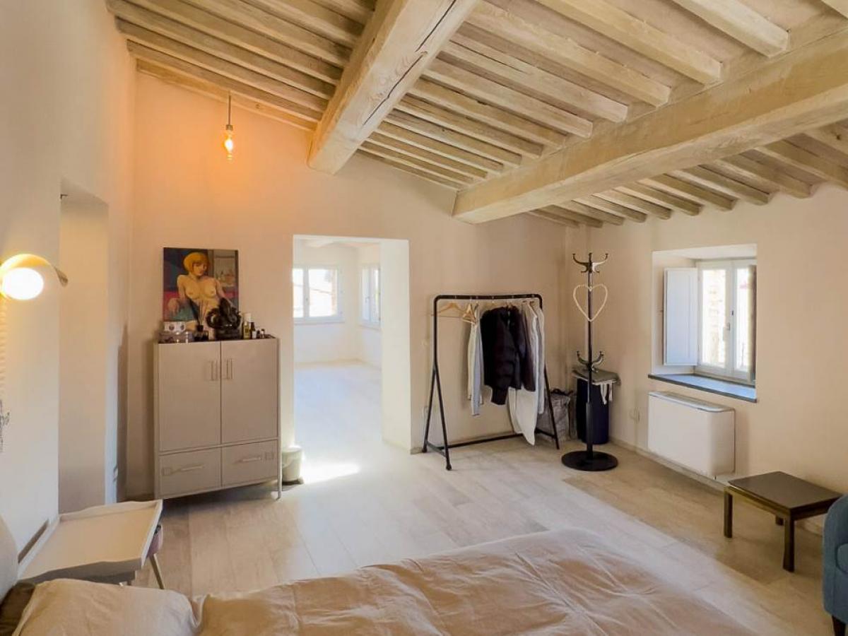 Located in the historic center of San Quirico d'Orcia, this 220 sqm apartment occupies the first floor of a stone farmhouse consisting of five units. Fully renovated between 2017 and 2020 by merging multiple apartments, it features refined interiors and a contemporary style. The entrance opens into a large living room with modern fireplace, followed by a spacious kitchen with central island and access to the panoramic terrace. The sleeping area includes a bedroom with en-suite bathroom, a second bedroom with private bathroom, a third tower bedroom and a technical room with laundry.