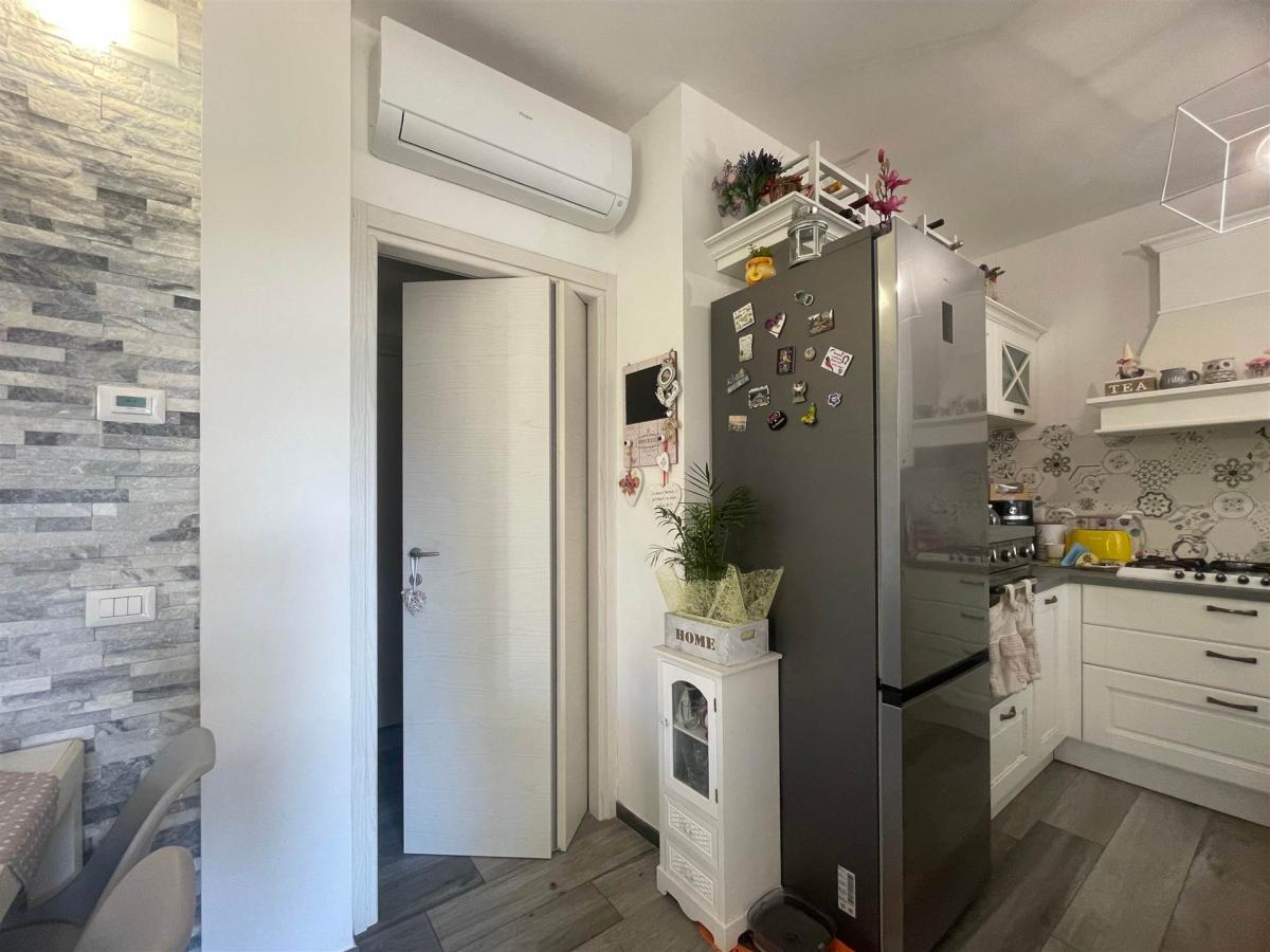 We are delighted to present this charming newly built apartment located on the ground floor of a semi-detached house in San Vincenzo, Livorno province. The property offers approximately 63 sqm of living space and is entirely detached on all four sides, ensuring maximum privacy and natural light throughout the day. The entrance is through a stylish gate and leads to a beautiful, well-maintained garden. A large porch welcomes you to the front door, opening into a bright and functional open-plan living room with a modern kitchen. The sleeping area includes two bedrooms: a master and a medium-sized room, both cozy and comfortable. The bathroom is windowed and features high-end finishes. The apartment boasts modern systems, including underfloor heating, thermal insulation, photovoltaic panels, and heat pumps, all contributing to excellent energy efficiency. This home is ideal for those seeking a modern, energy-efficient lifestyle, whether as a main residence or a seaside holiday home.