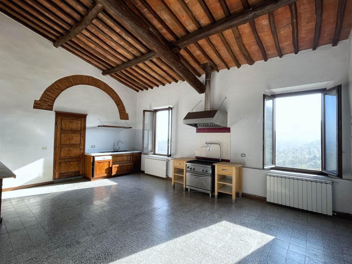 The property includes several panoramic terraces, one of which provides breathtaking views of Florence—perfect for outdoor dining or relaxing while admiring the city skyline. The private garden surrounding the three exposed sides of the house offers abundant green space, ideal for creating a landscaped garden, vegetable plot, or children's play area. Access is via a private gate, ensuring privacy and prestige. The elevated position guarantees peace and tranquility while remaining within easy reach of Scandicci's amenities and Florence city center. The entire farmhouse (approx. 500 sqm + cellars, garden, and terraces) is also available for purchase at €2,500,000—an exceptional opportunity for those seeking an authentic Tuscan lifestyle just minutes from Florence.