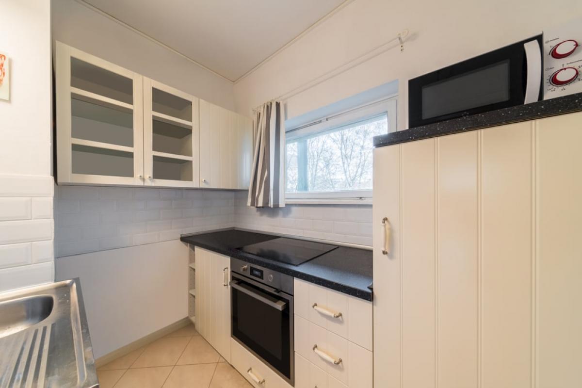 The floor plan offers approx. 38m2 of living space and consists of a spacious living room, a large balcony, an entrance room with a practical storage room, a separate fully equipped kitchen and a modern bathroom with shower.