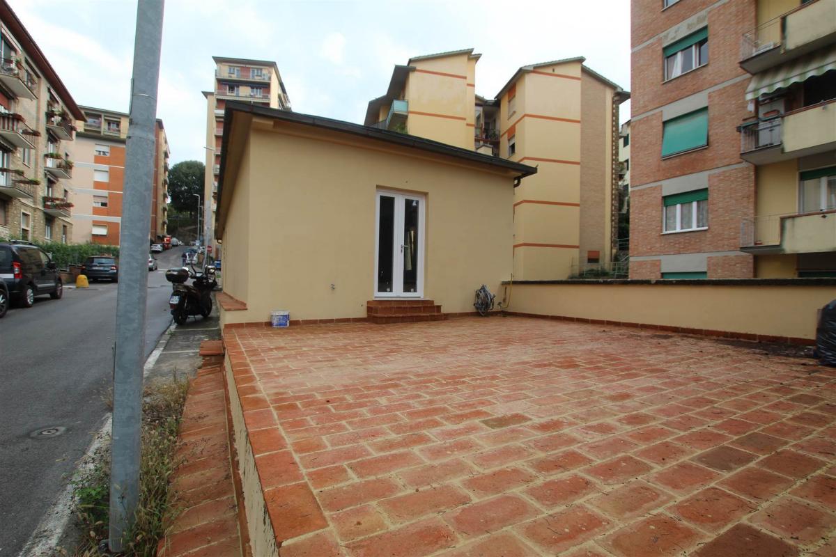 The apartment, finely renovated, features a large living room with kitchenette and access to a beautiful 45 sqm terrace, ideal for relaxation and social gatherings. On the ground floor, there is a windowed bathroom. Ascending the beautiful designer staircase, you reach the first floor where there are three bedrooms and a second finely finished bathroom. The apartment is sold partially furnished with high-quality furniture, ready to be inhabited.