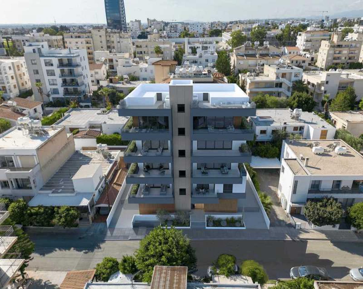 Nestled in the sought-after neighbourhood of Strovolos in Nicosia, this unique residential development perfectly combines comfort, style and quality of urban living. Surrounded by a variety of amenities such as supermarkets, shops, restaurants, cafes, green parks, the project offers a convenient and comfortable living environment. In addition, there are many schools in the immediate vicinity, from kindergartens to higher education institutions, including the renowned European University of Cyprus.The luxurious four-storey complex comprises 2-3 bedroom apartments with contemporary architectural design using high quality materials and finishes. The interior of the apartments is characterised by modern minimalism with sophisticated style and functionality. Each flat is equipped with photovoltaic panels, solar water heater, underfloor heating provision, as well as high-level thermal and acoustic insulation. Residents of the penthouses can relax on private spacious roof terraces and enjoy stunning views of the picturesque cityscape.