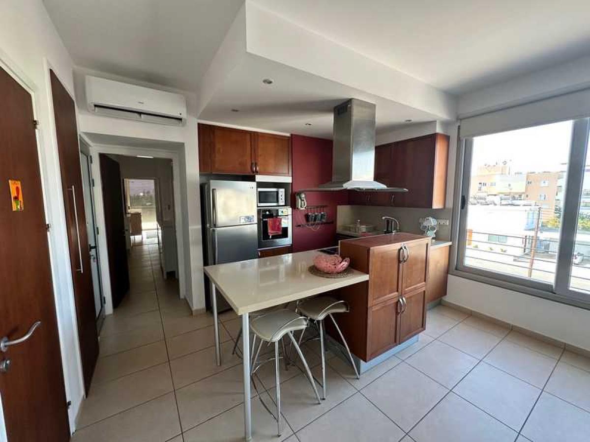 For Sale Cozy top floor 2bed with roof garden in Nicosia, Strovolos Dasoupolis - StrovolosCharming fashionable furnished apartment, set on the top floor of a two-storey building in a cul-de-sac of Dasoupolis, within easy reach to the various facilities including Falcon Private School. The flat comprises a generous living space, dining area, a fitted kitchen with all electrical appliances, two spacious bedrooms with parquet floors, and a bathroom. Additional features include solar water heaters, a pressurized water system, air conditioning in all rooms, an alarm system, double glazing, internet and telephone access. Externally, it benefits from a large roof garden with its own internal stairway, and covered veranda with pergola and barbecue area. It has its own storage room and covered parking space.