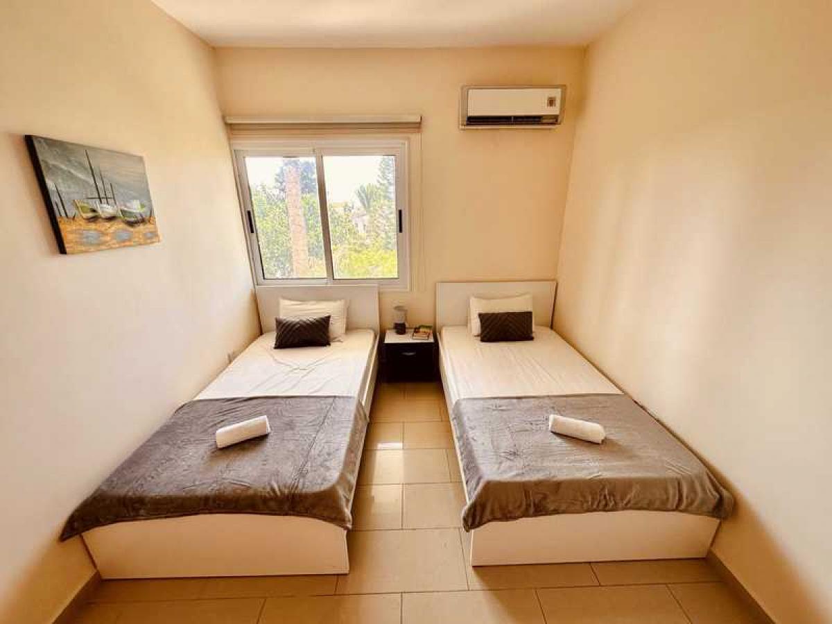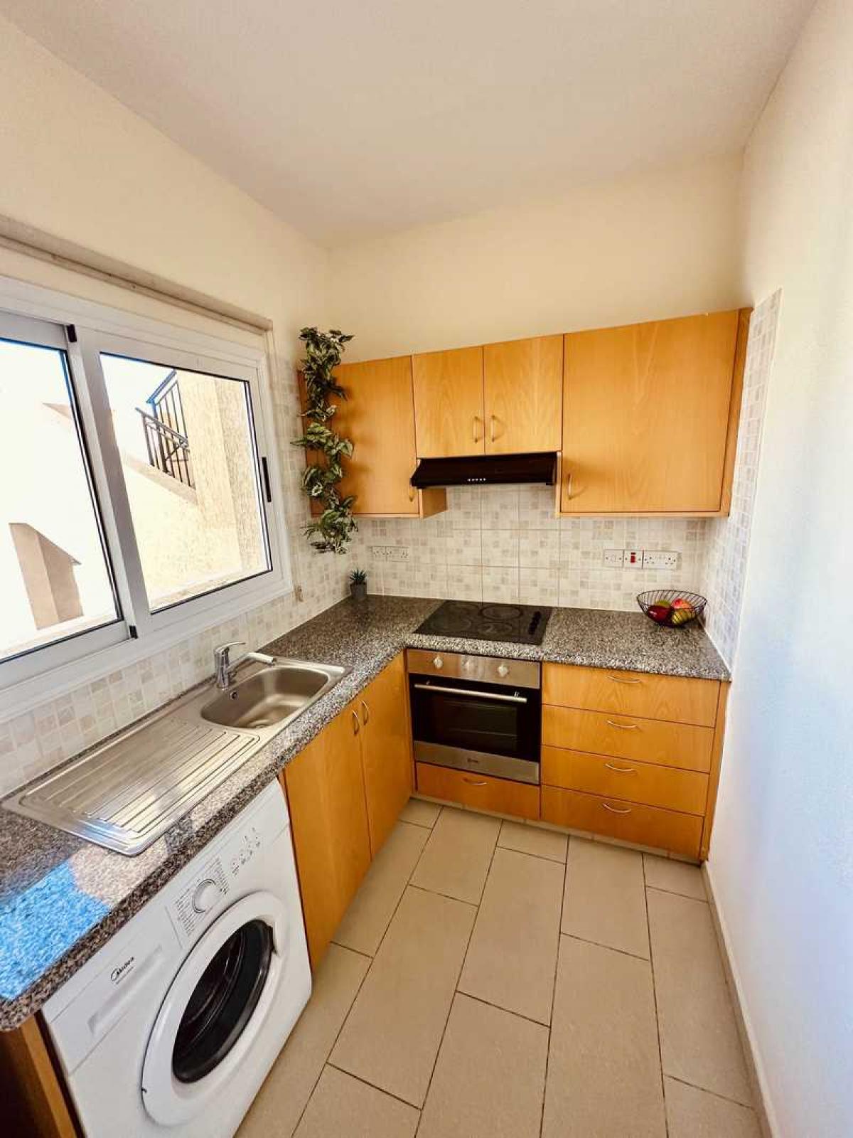 Kings Beach Apartment B12This two-bedroom spacious apartment has so many advantages to its premises. Located close to the Tombs of the Kings, in a very serene building complex, away from the busy roads of the main sea-side traffic. Situated on the first floor of a private apartment building, it has 1 serene balcony facing the sea and garden of the complex, ensuring open beautiful skies, pool view and plenty of sunlight for those who like to spend their free time barbecuing with friends or relaxing with a book and coffee. When entering the apartment through the main door, you are welcomed to the living room area, where a dining and a sitting area are placed on your right hand just right to ensure maximum comfort and space. The kitchen which is separated on the left-hand side, is facing a large window to the outside area bringing lots of sunlight for those cooking tasks. The 2 bedrooms are located on the left area of the apartment, both have sea view and are separated by the convenience of a modern and spacious bathroom, which incidentally facilitates a Jacuzzi in the bathtub for those relaxing weekends.