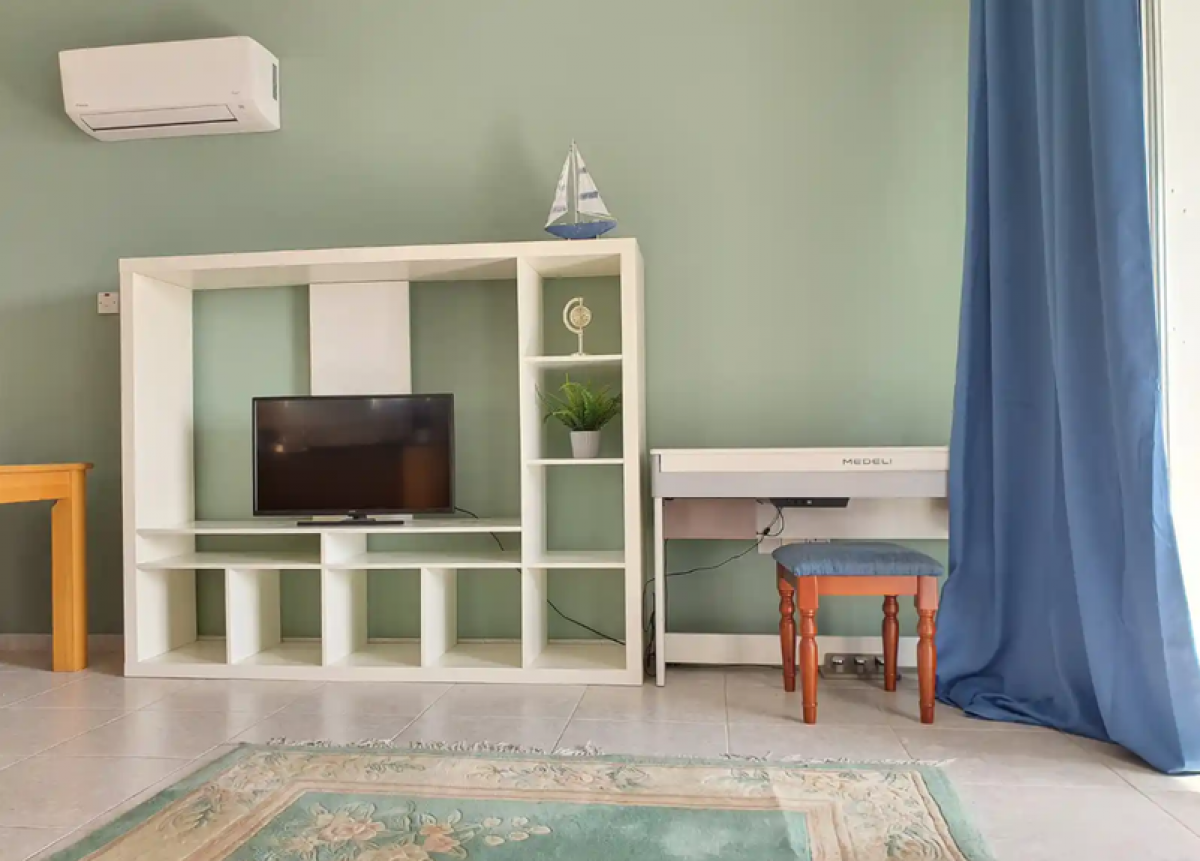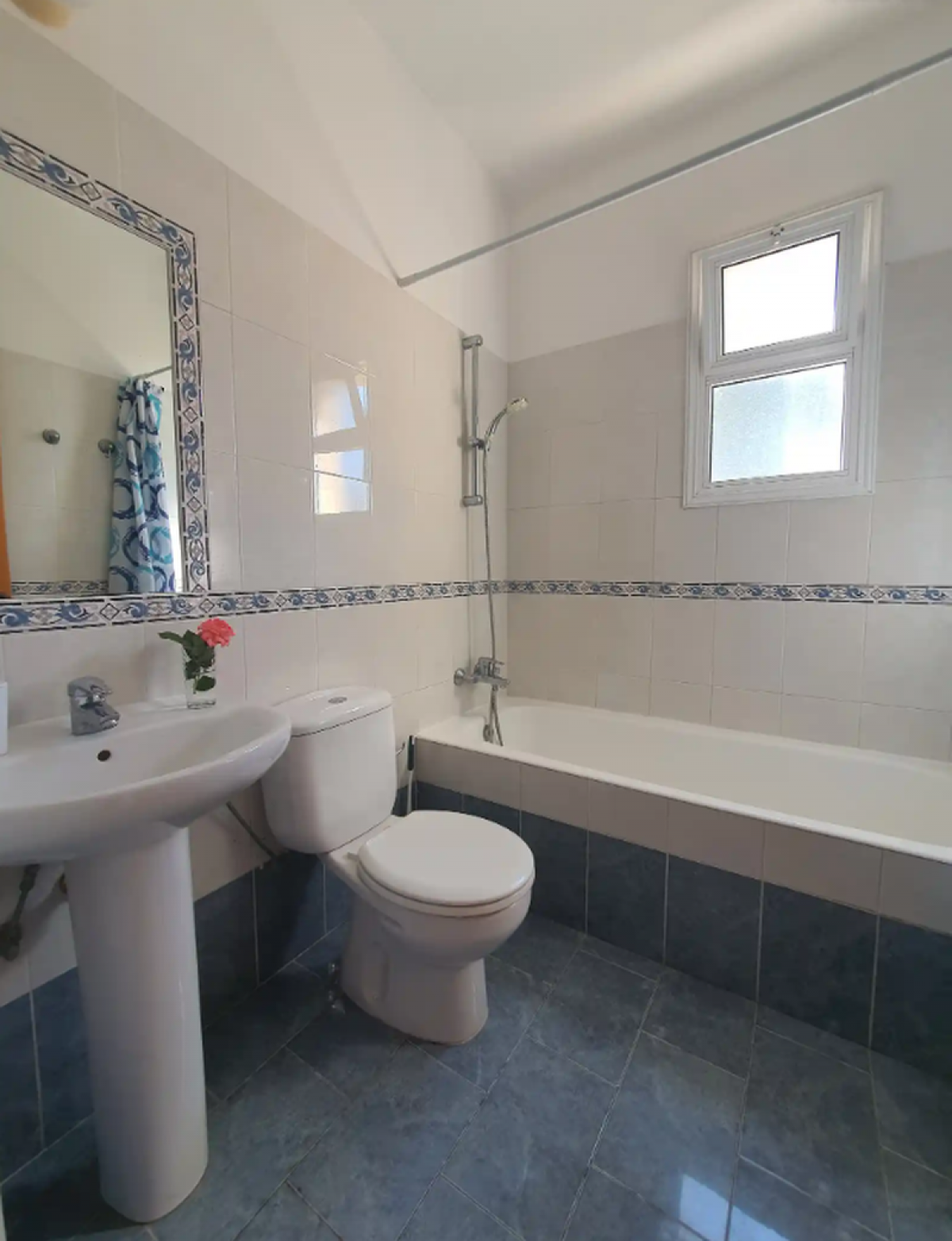 Located on the first floor, the apartment features two well-appointed bedrooms, a spacious living area, and a modern kitchen equipped with all necessary appliances. The open-plan design creates a bright and airy atmosphere, enhanced by full air conditioning throughout the apartment.