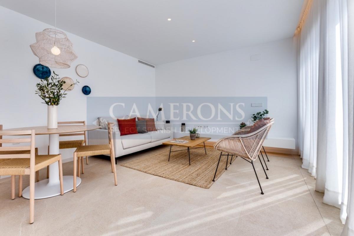Here is an innovative housing project located in the residential area of Los Balcones, in Torrevieja. They offer 2 or 3 bedroom apartments, on ground floor with garden or top floor with solarium, and 2 bedroom townhouses with garden and solarium. All homes have a modern design, with an open concept day area, two bathrooms and terraces with panoramic views. This residential is notable for its large communal area, consisting of a large infinity pool, with a specific area for children, and large garden areas. Available parking spaces and storage rooms in underground parking. The local area has a large number of amenities such as large supermarkets, schools, church, pharmacy : All a few minutes by car from the city center and the fabulous beaches of Torrevieja and Orihuela Costa.