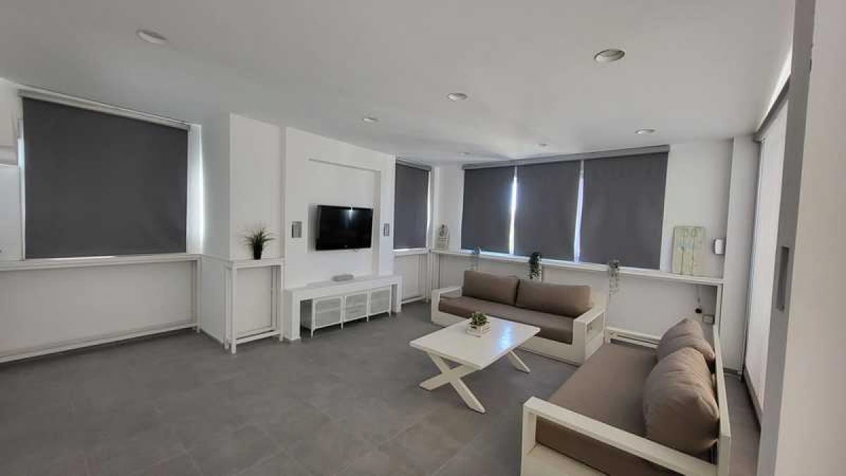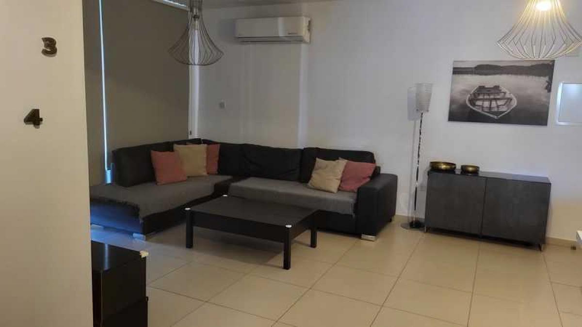 2 Bedroom apartment with private roof garden.The apartment (first floor) has 76m2 internal area with fully furnished Living/Dinning area and open-plan fully equipped kitchen, 2 bedrooms with aluminum shutters and 1 WC.