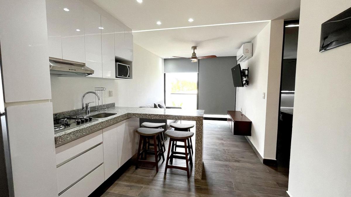 This 43.72 m2 apartment combines modern design with the relaxed atmosphere characteristic of Tulum. It features a spacious bedroom, a full bathroom,